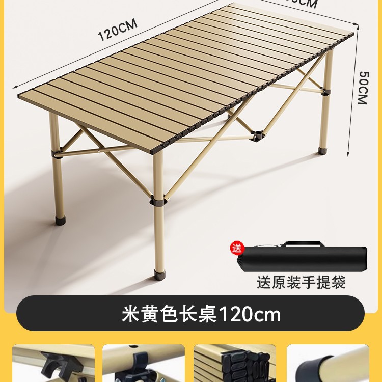 • [두꺼운 X자형 탄소강] 베이지색 긴 테이블 120cm에는 휴대용 수납가방이 함께 제공됩니다.☆♢