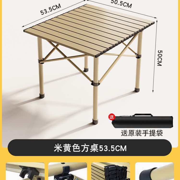 • [두꺼운 X자형 탄소강] 베이지 사각 테이블 53cm 휴대용 수납가방 포함☆♢