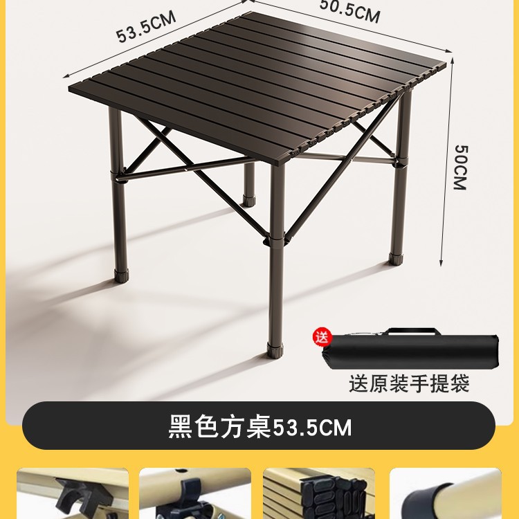 • [두꺼운 X자형 탄소강] 블랙 사각 테이블 53cm에는 휴대용 수납가방이 함께 제공됩니다.☆♢