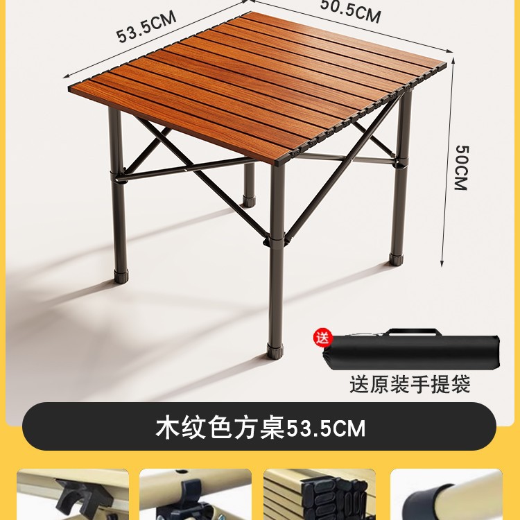 • [두꺼운 X자형 탄소강] 우드그레인 컬러 사각 테이블 53cm 휴대용 수납가방 포함☆♢