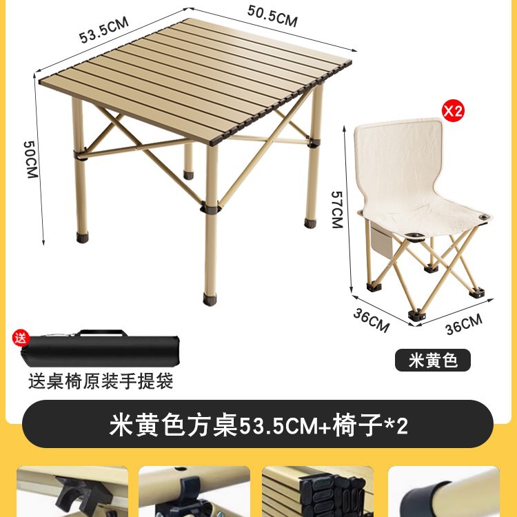 • [두꺼운 X자형 탄소강] 베이지색 사각 테이블 53cm + 의자 2개, 휴대용 수납가방 포함☆♢