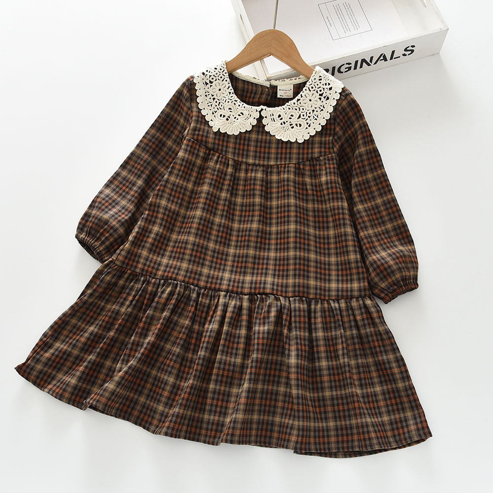 격자 무늬 수 놓은 중공 옷깃 공주 드레스 여자 순수 코튼 긴 소매 드레스 2025 가을 새로운 Q2567
