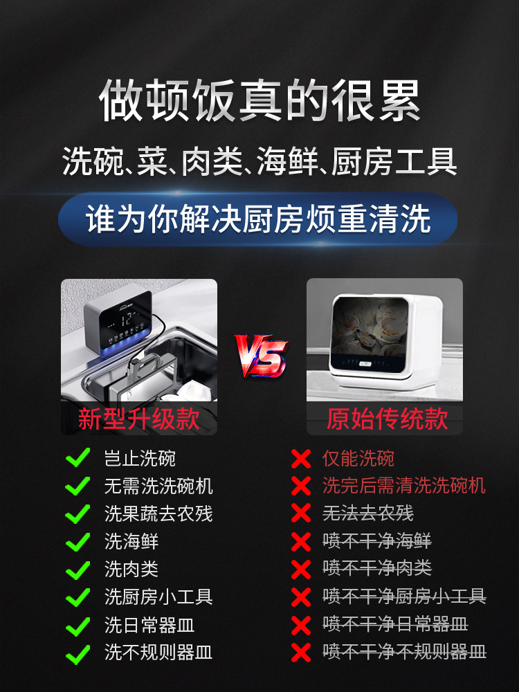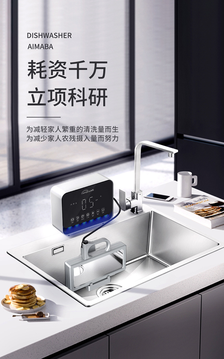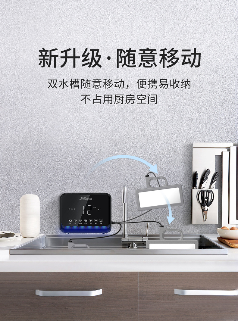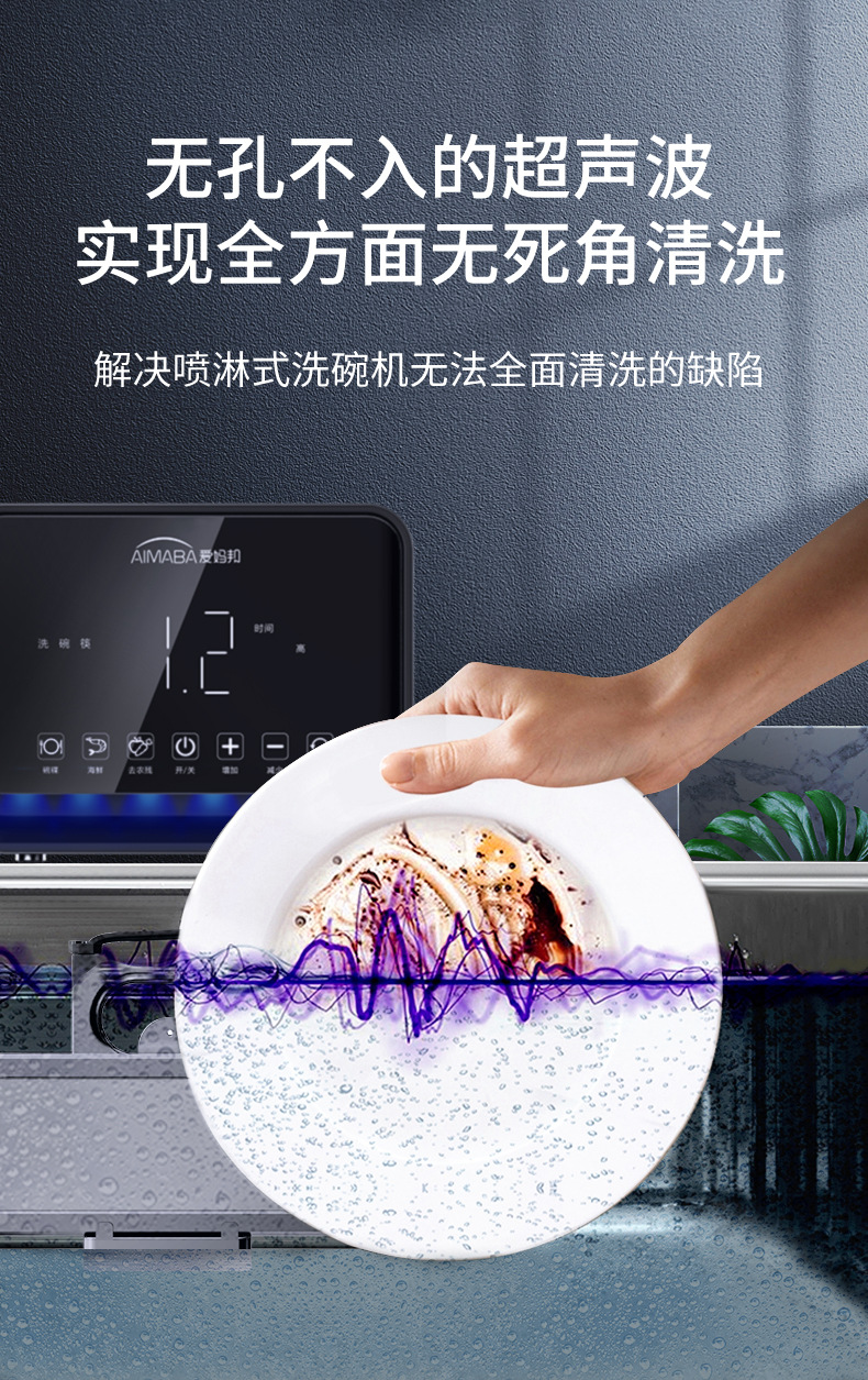 Aimabang 초음파 식기 세척기 가정용 소형 완전 자동 데스크탑 설치가 필요없는 싱크대 통합 세척 기계