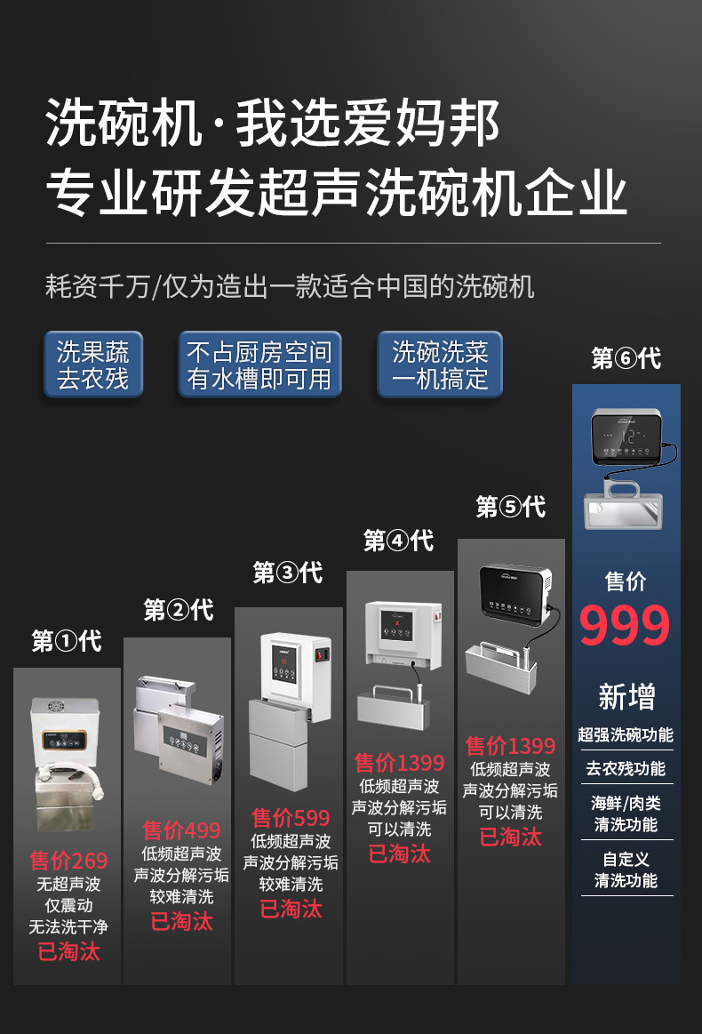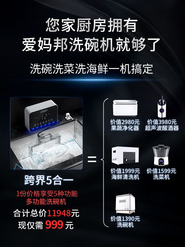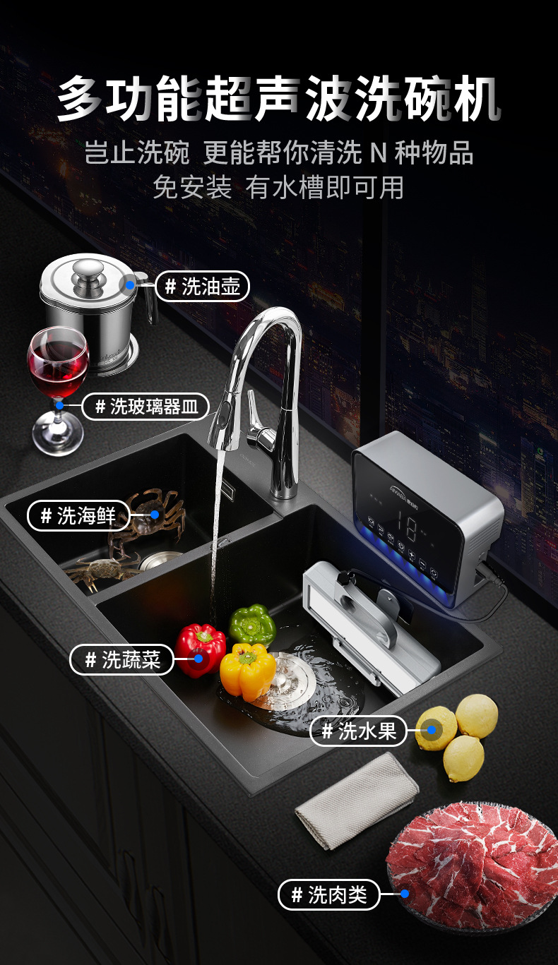 Aimabang 초음파 식기 세척기 가정용 소형 완전 자동 데스크탑 설치가 필요없는 싱크대 통합 세척 기계