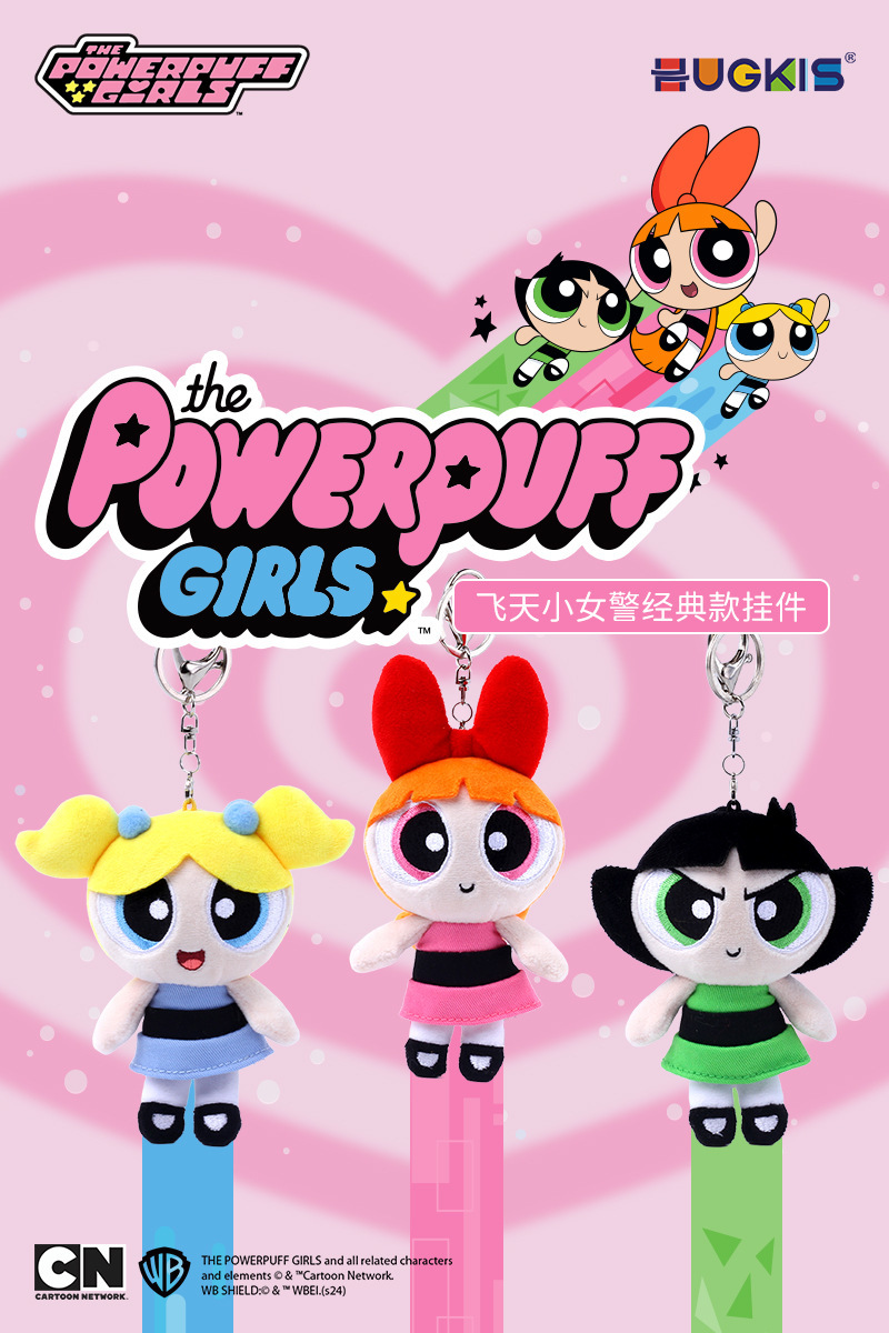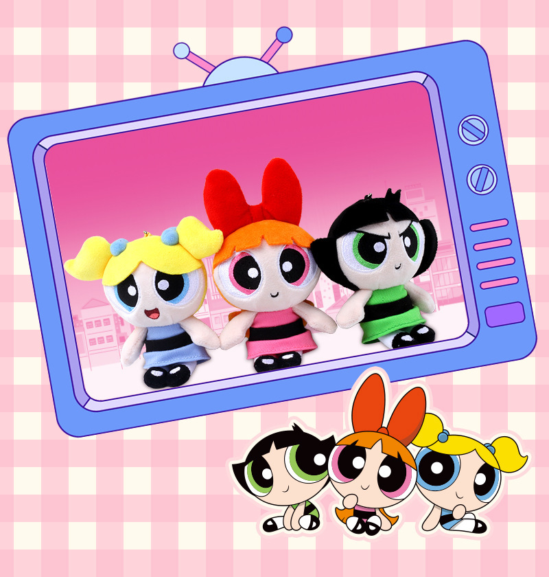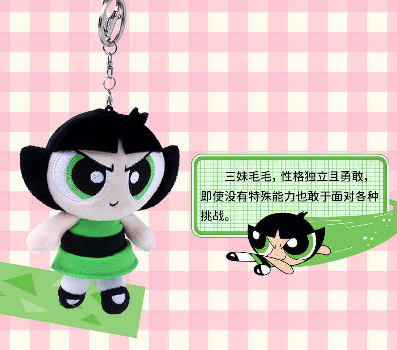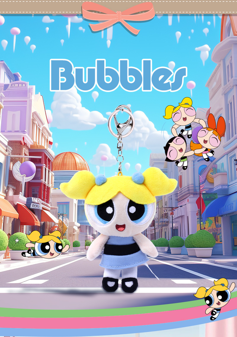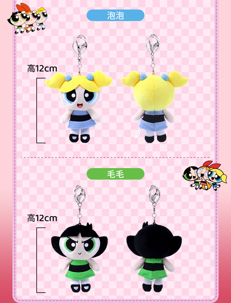 정품 Powerpuff Girls 봉제 인형 펜던트 귀여운 인형 키 체인 만화 버블 인형 생일 선물스토어 가기