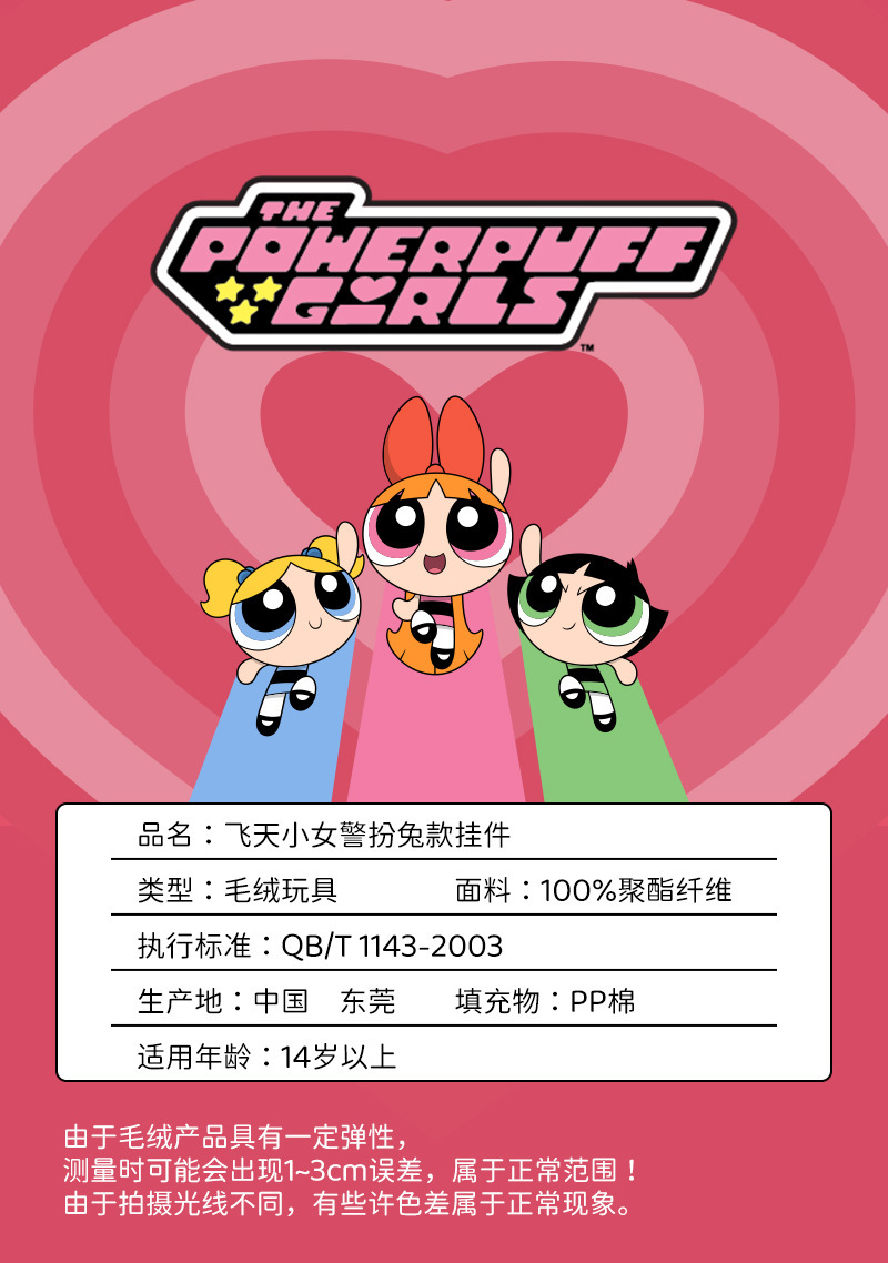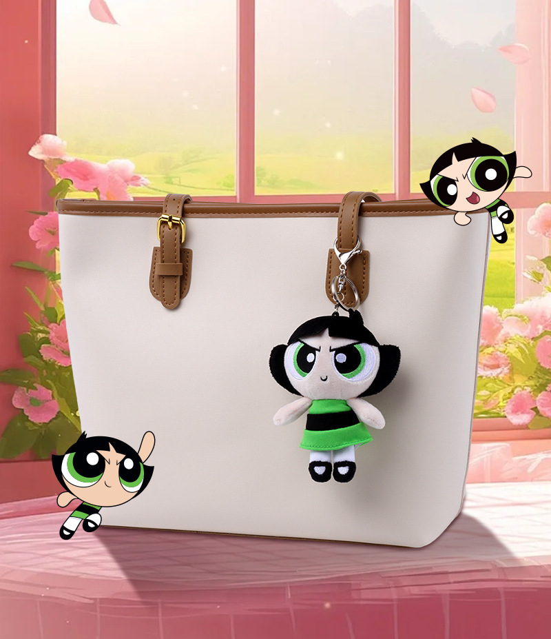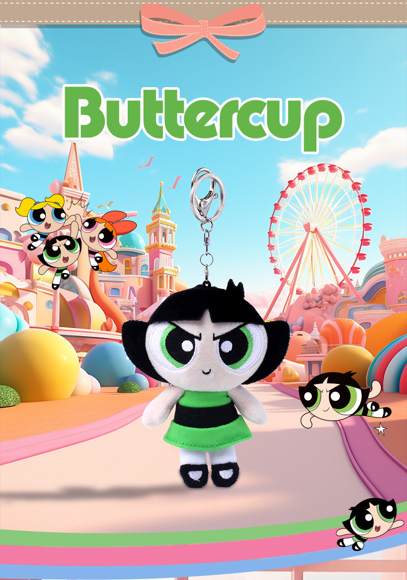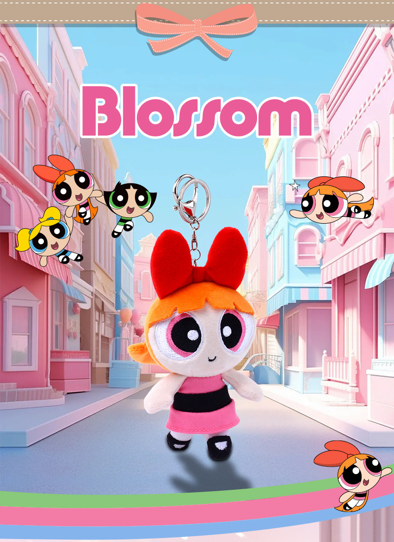 정품 Powerpuff Girls 봉제 인형 펜던트 귀여운 인형 키 체인 만화 버블 인형 생일 선물스토어 가기