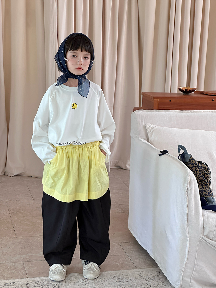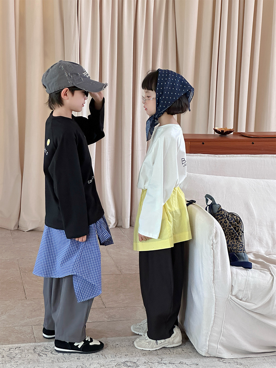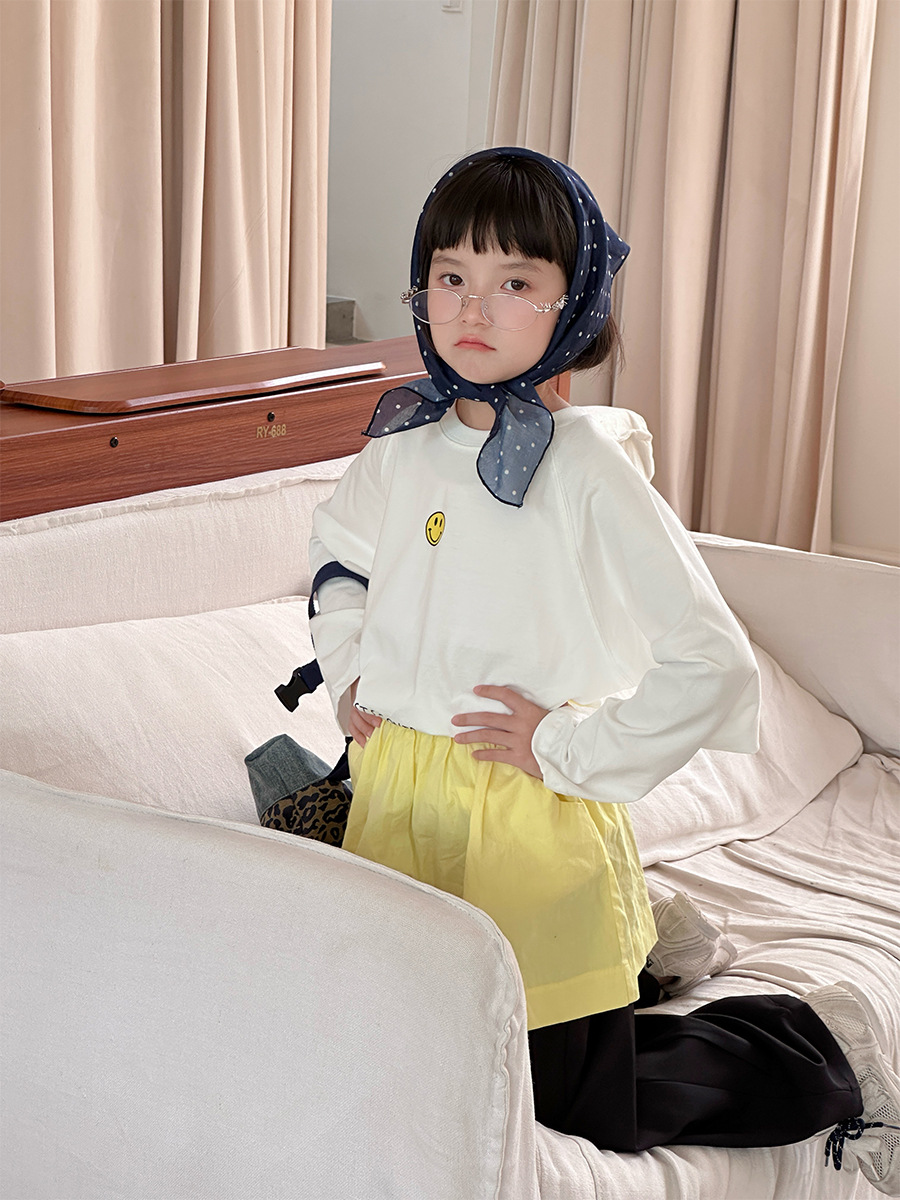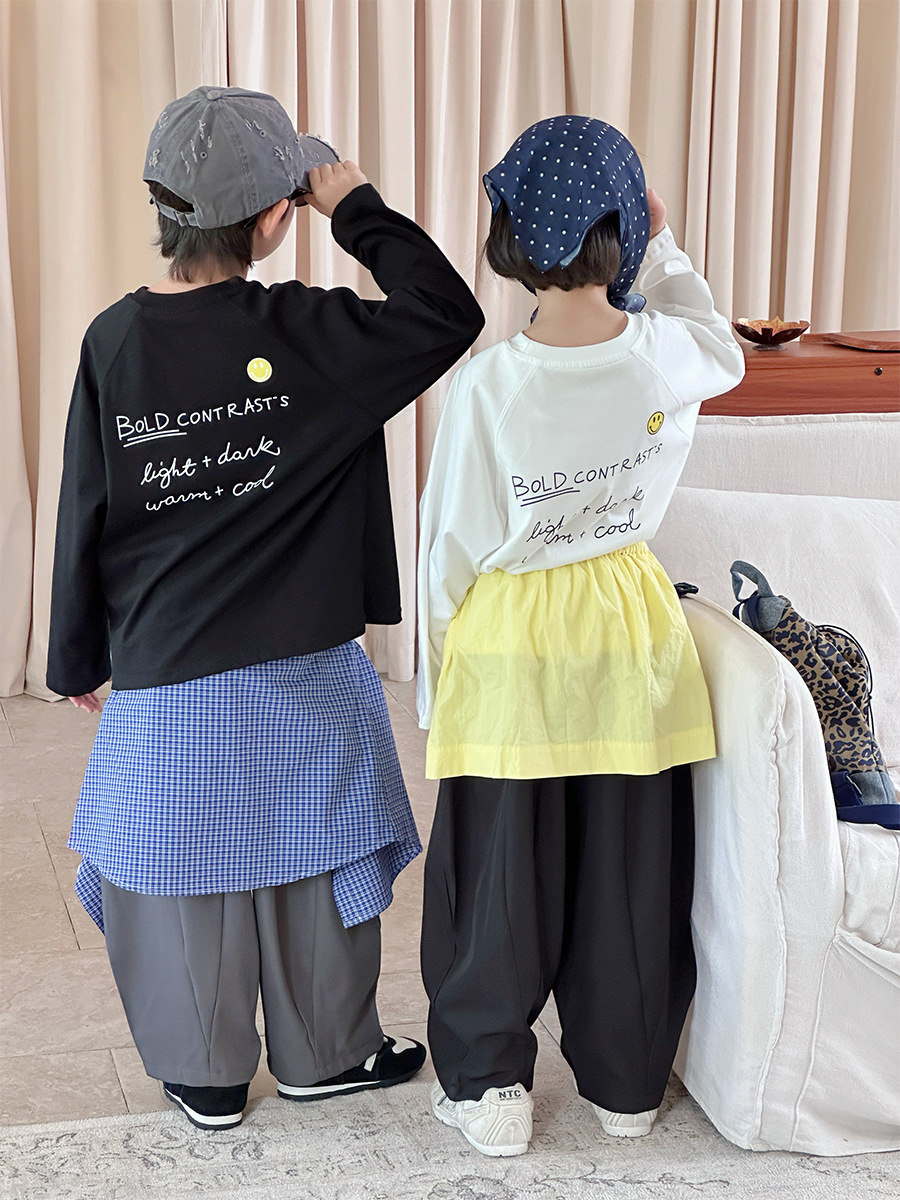 아동 티셔츠 2025 가을 새로운 한국어 버전 아동용 앞면과 뒷면 웃는 얼굴 프린트 긴팔 소년 다용도 라운드 넥 바닥 셔츠