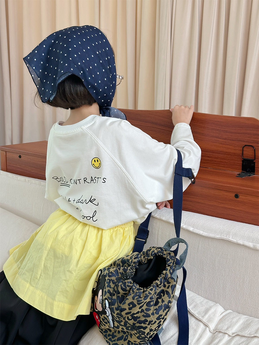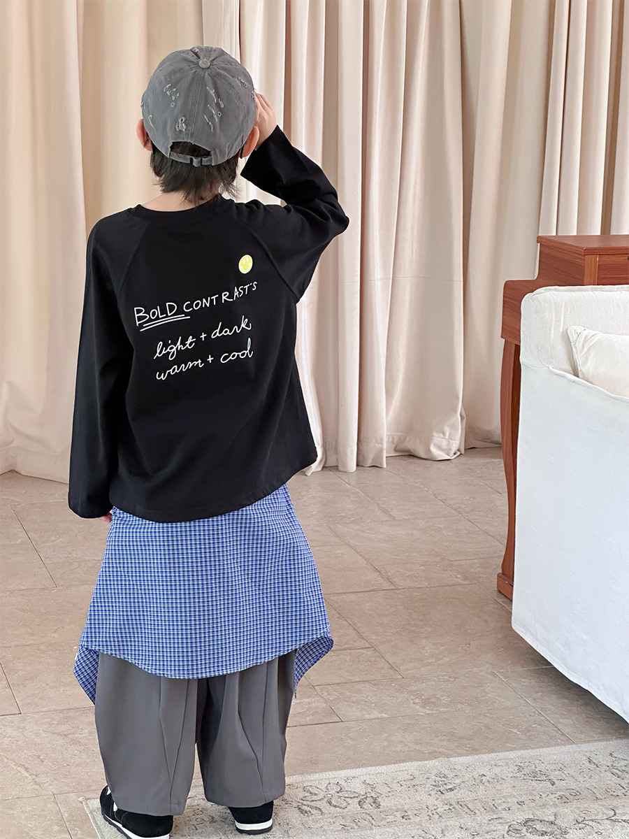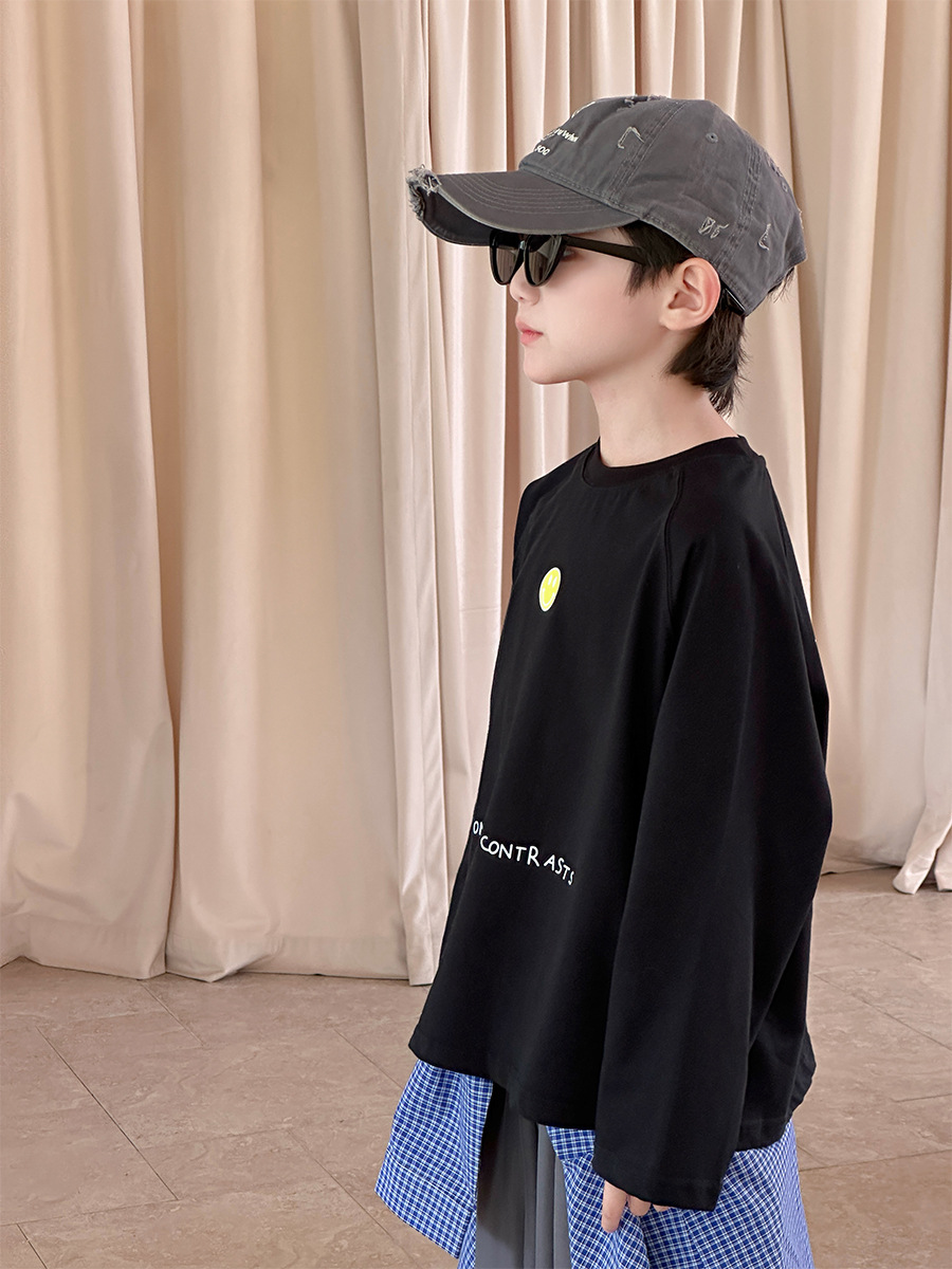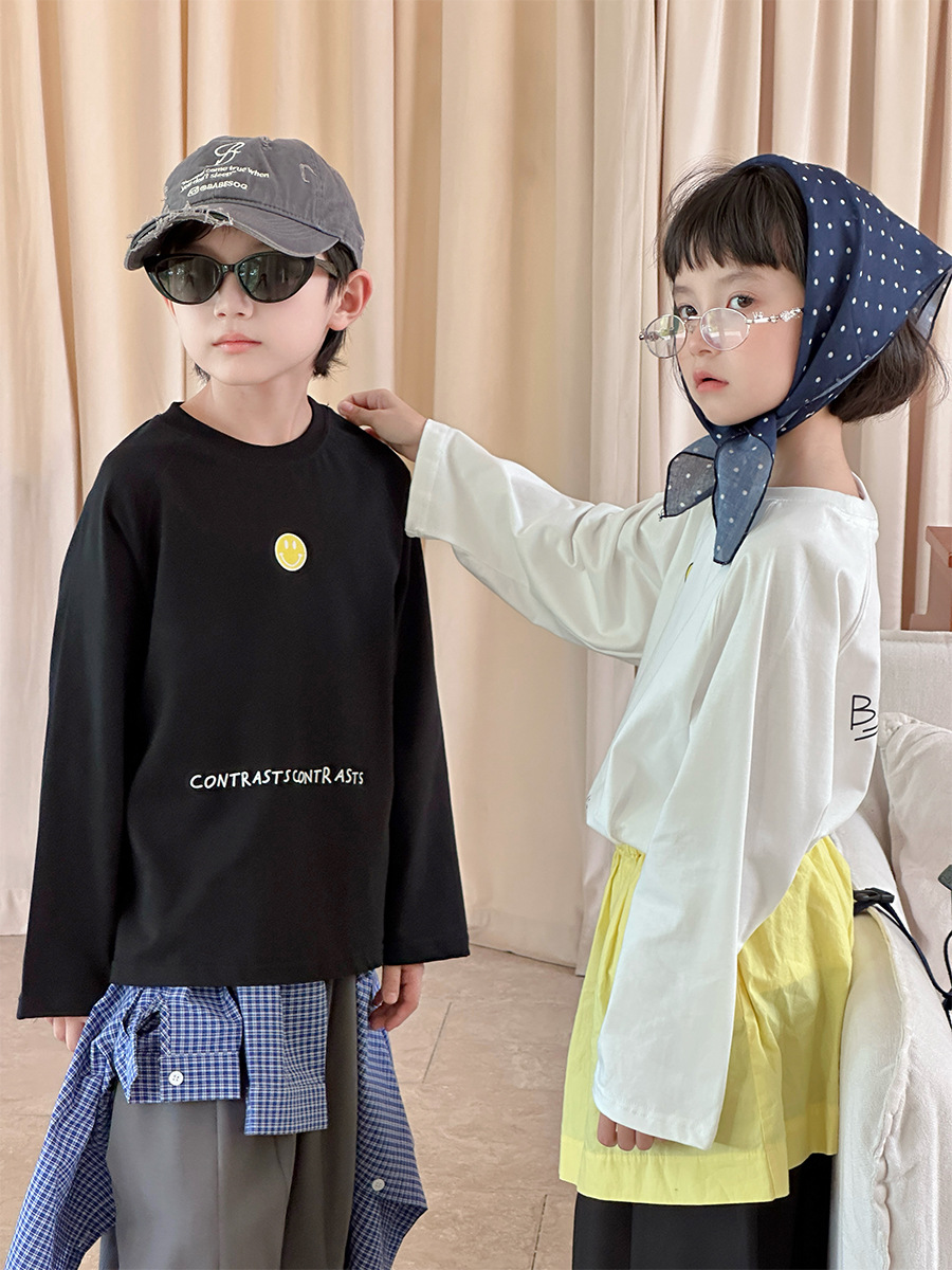 아동 티셔츠 2025 가을 새로운 한국어 버전 아동용 앞면과 뒷면 웃는 얼굴 프린트 긴팔 소년 다용도 라운드 넥 바닥 셔츠스토어 가기