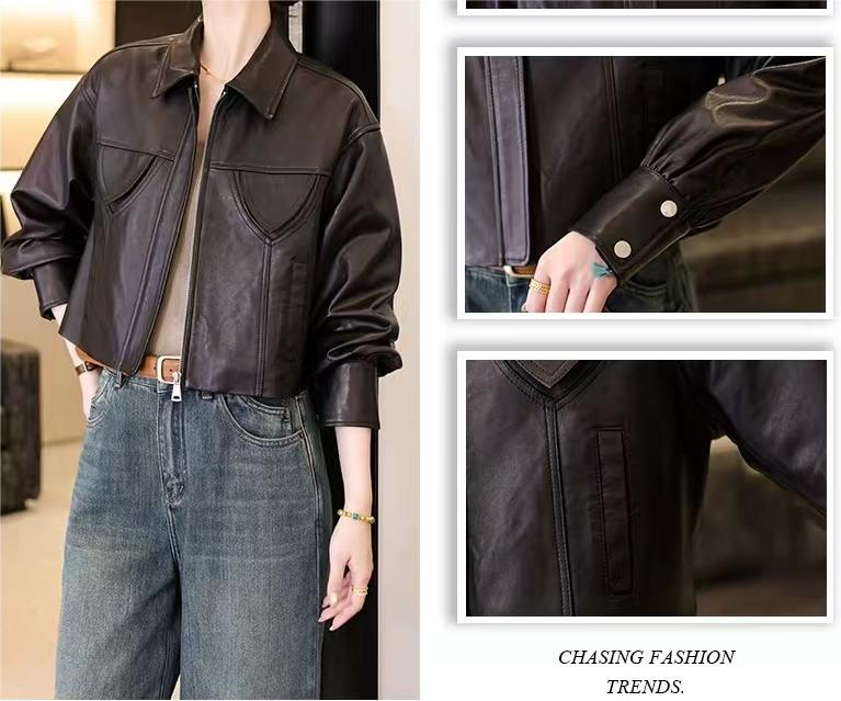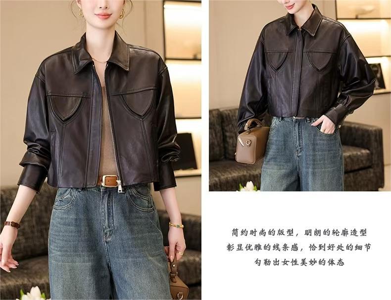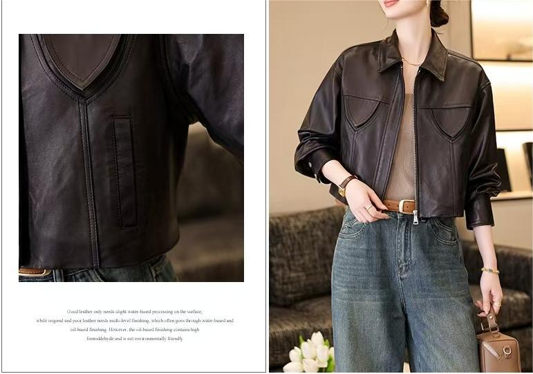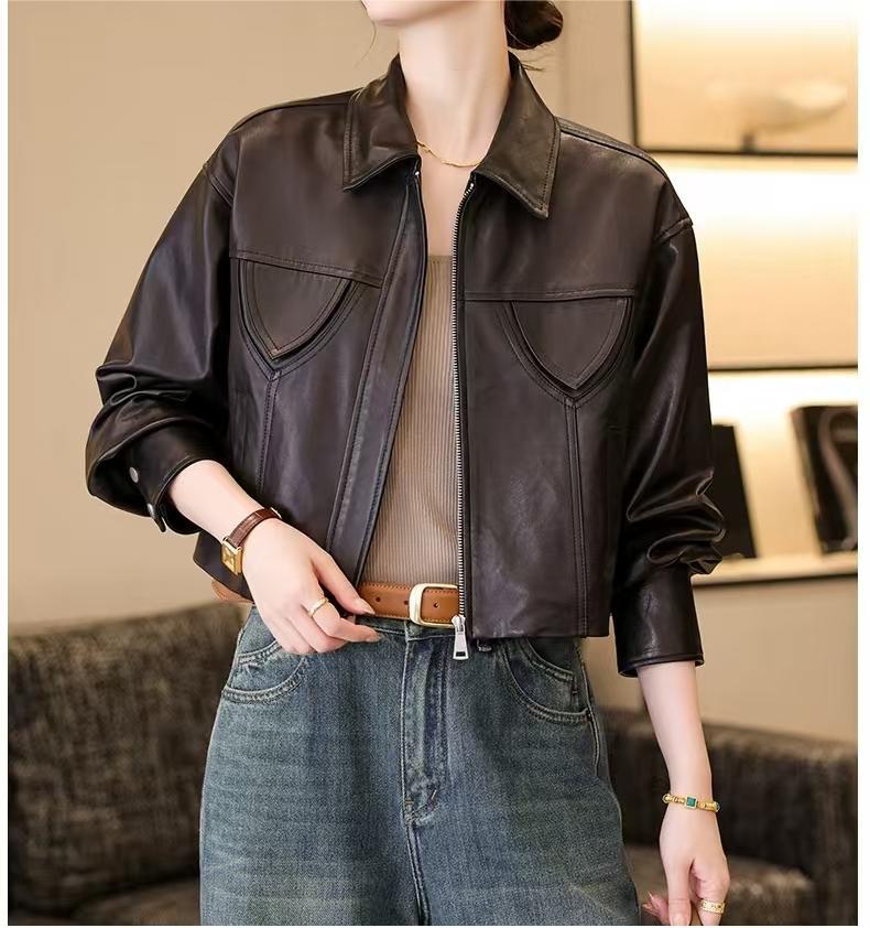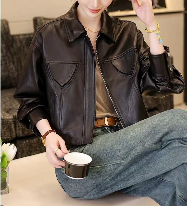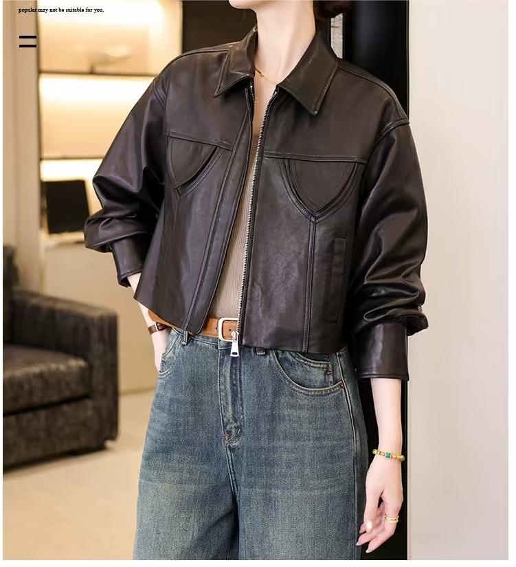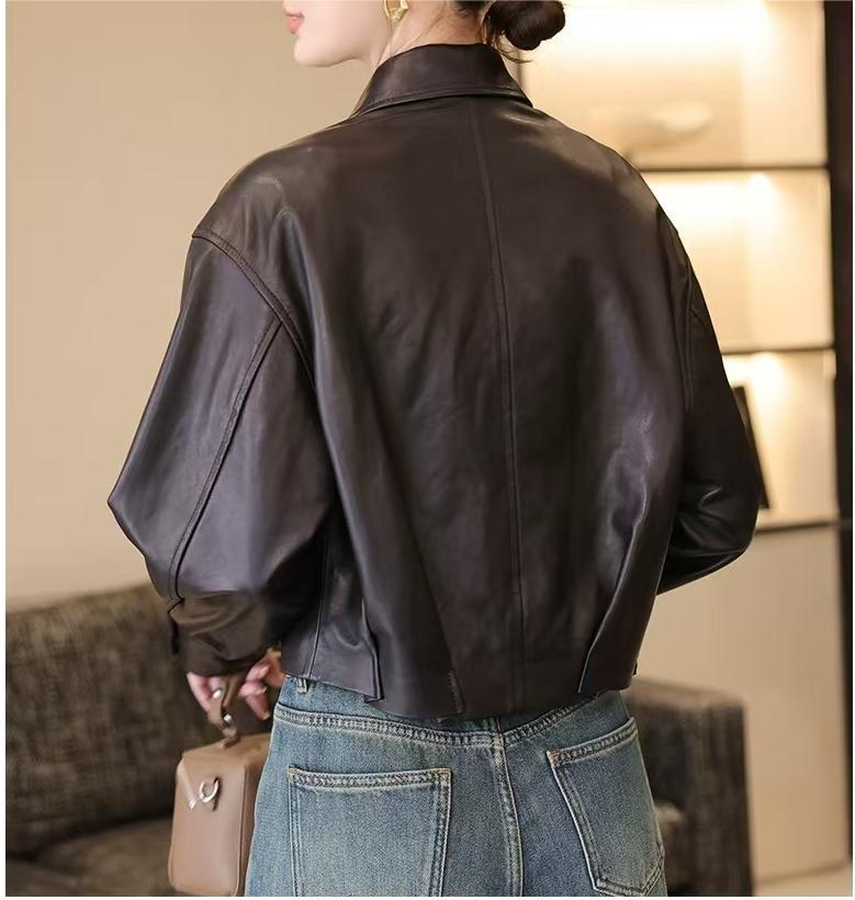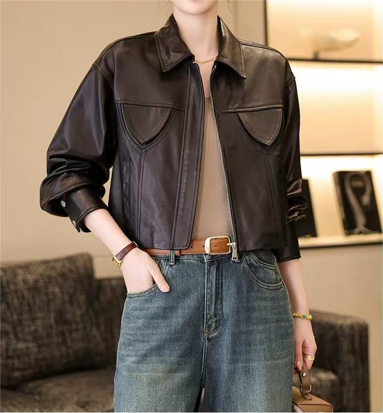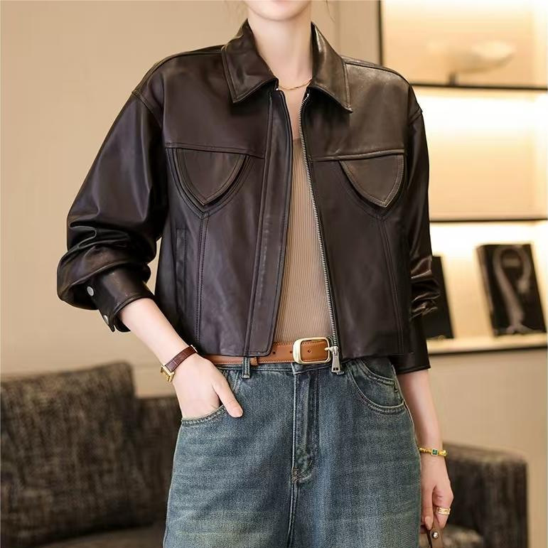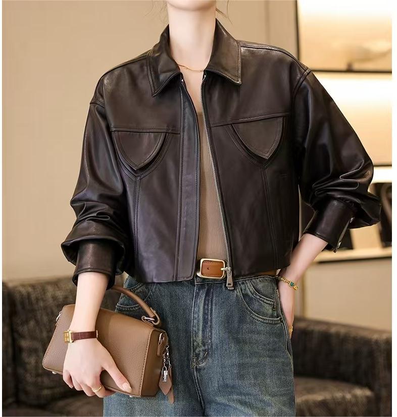 스페인 수입 정품 가죽 1층 오일 왁스 식물성 태닝 양가죽 여성용 짧은 재킷 복고풍 패션 캐주얼스토어 가기