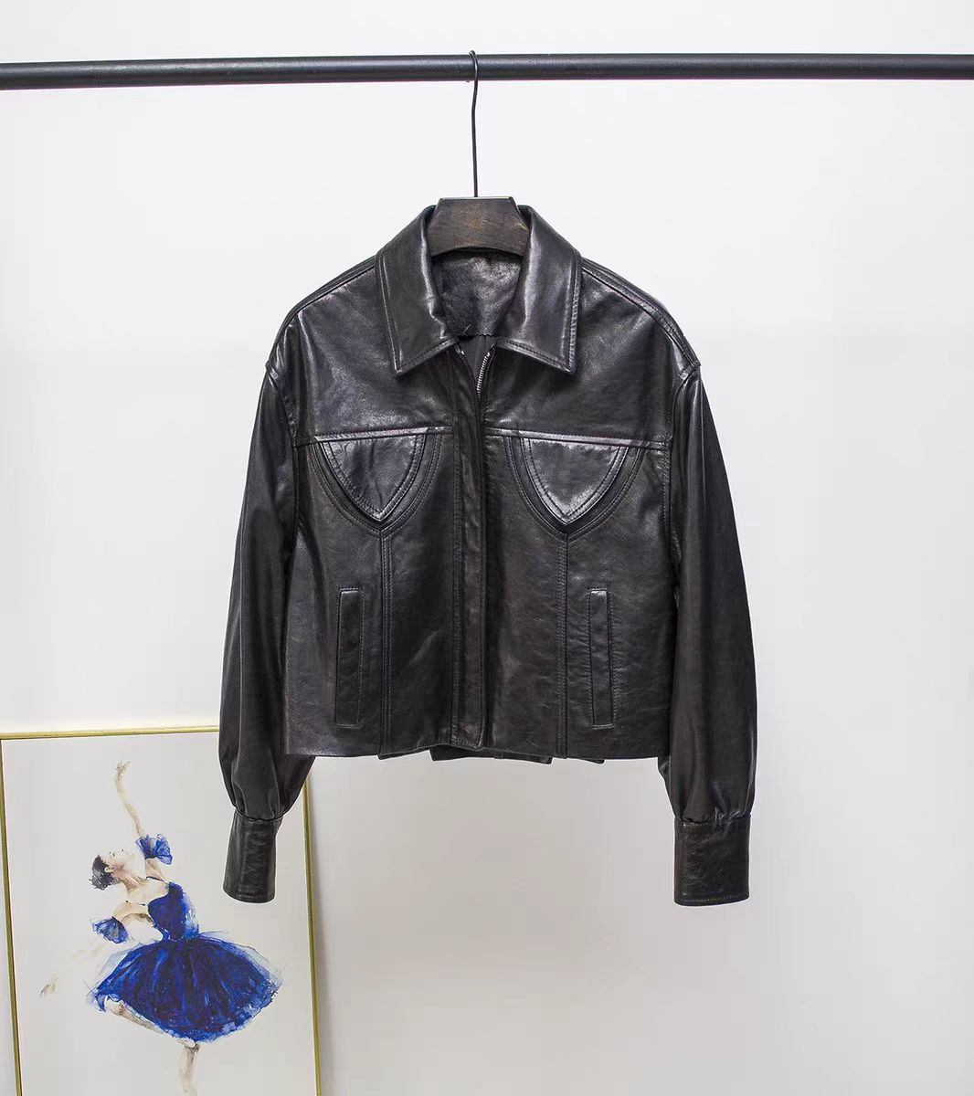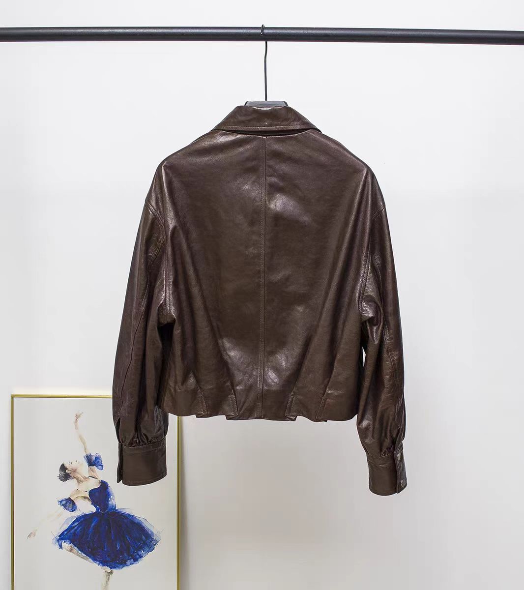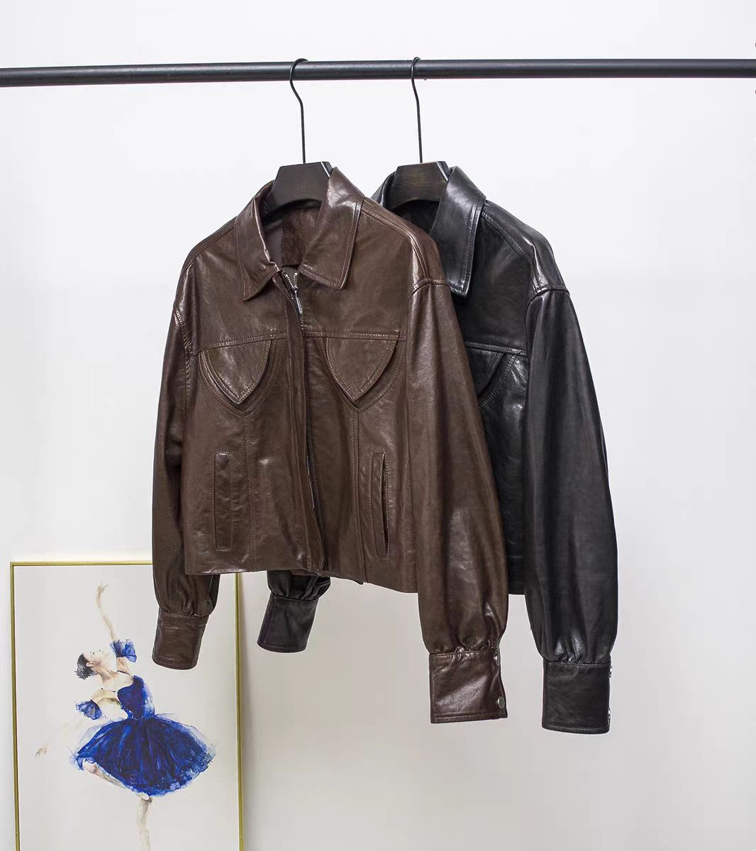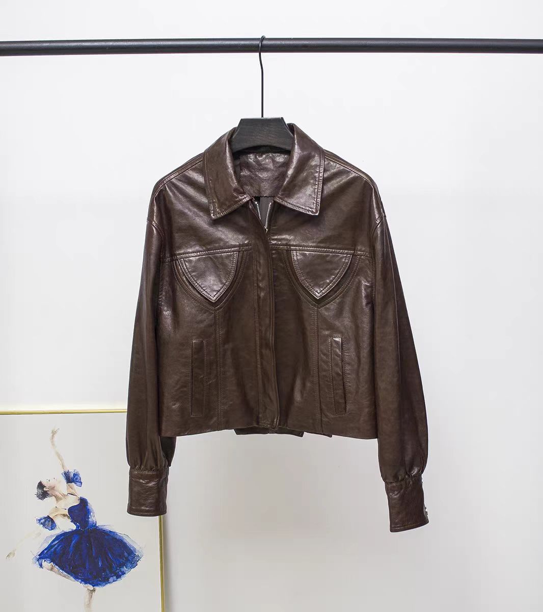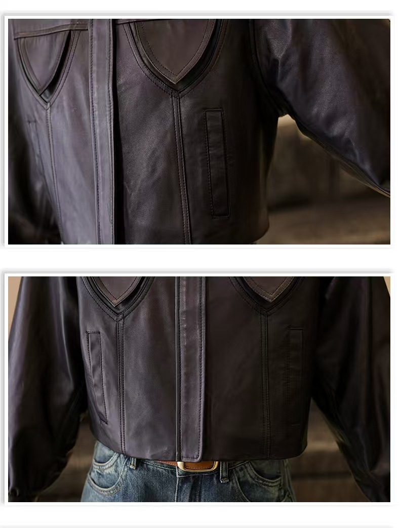 스페인 수입 정품 가죽 1층 오일 왁스 식물성 태닝 양가죽 여성용 짧은 재킷 복고풍 패션 캐주얼스토어 가기