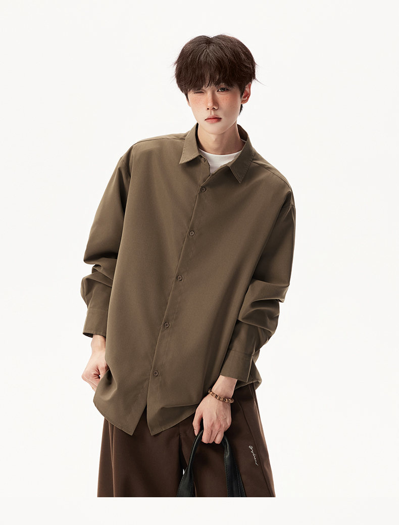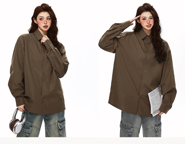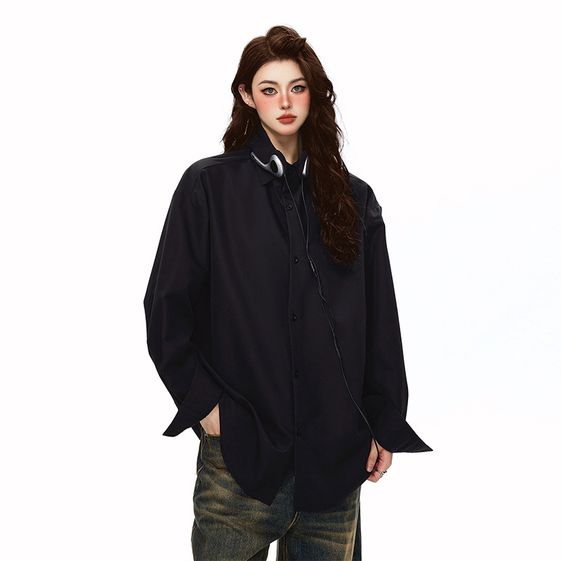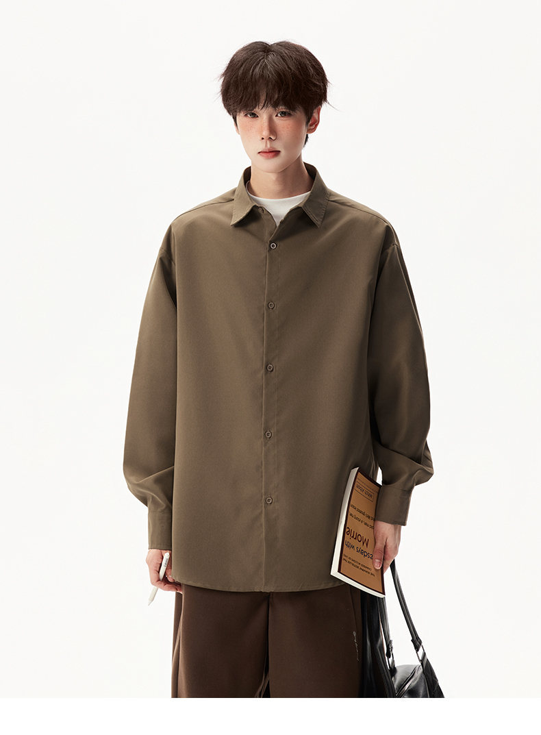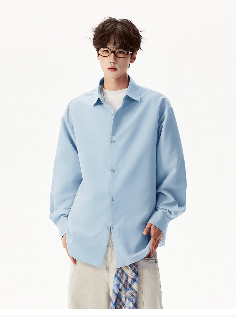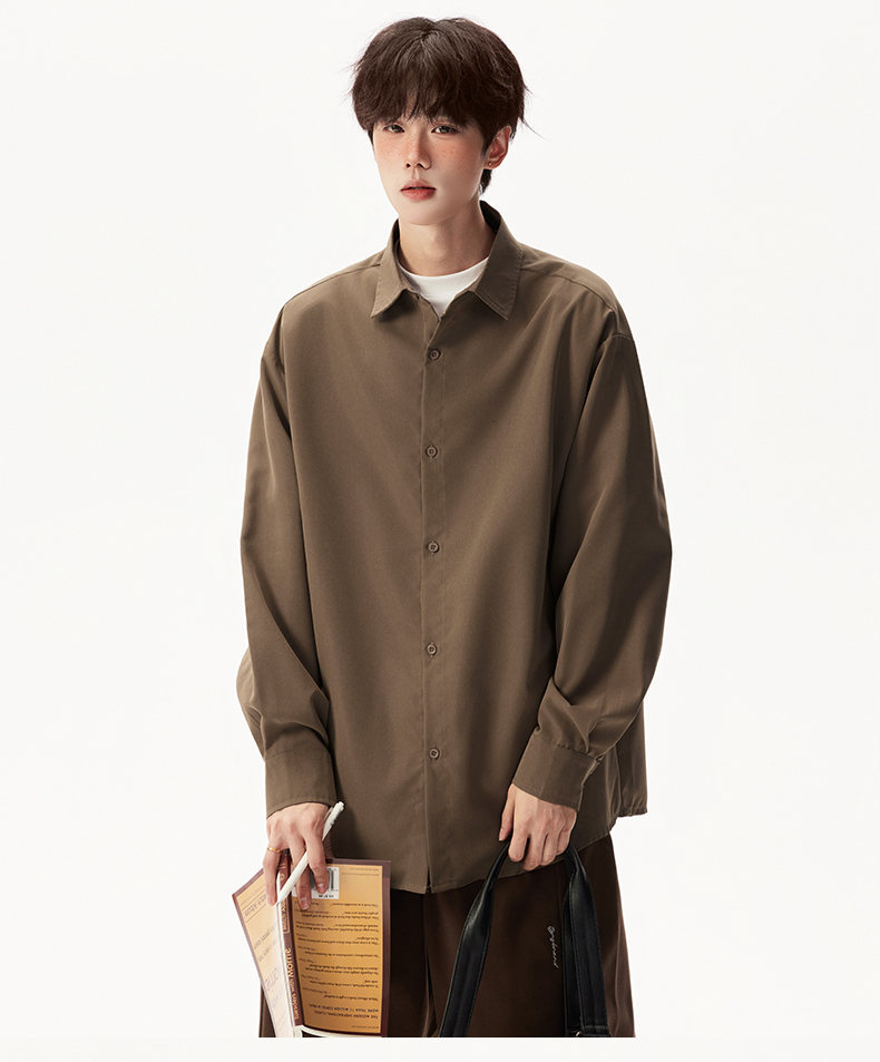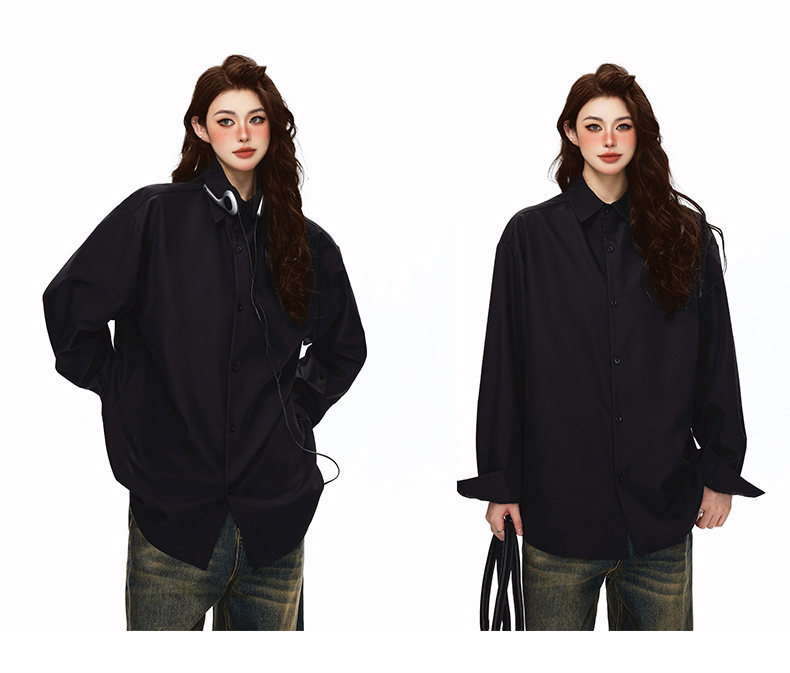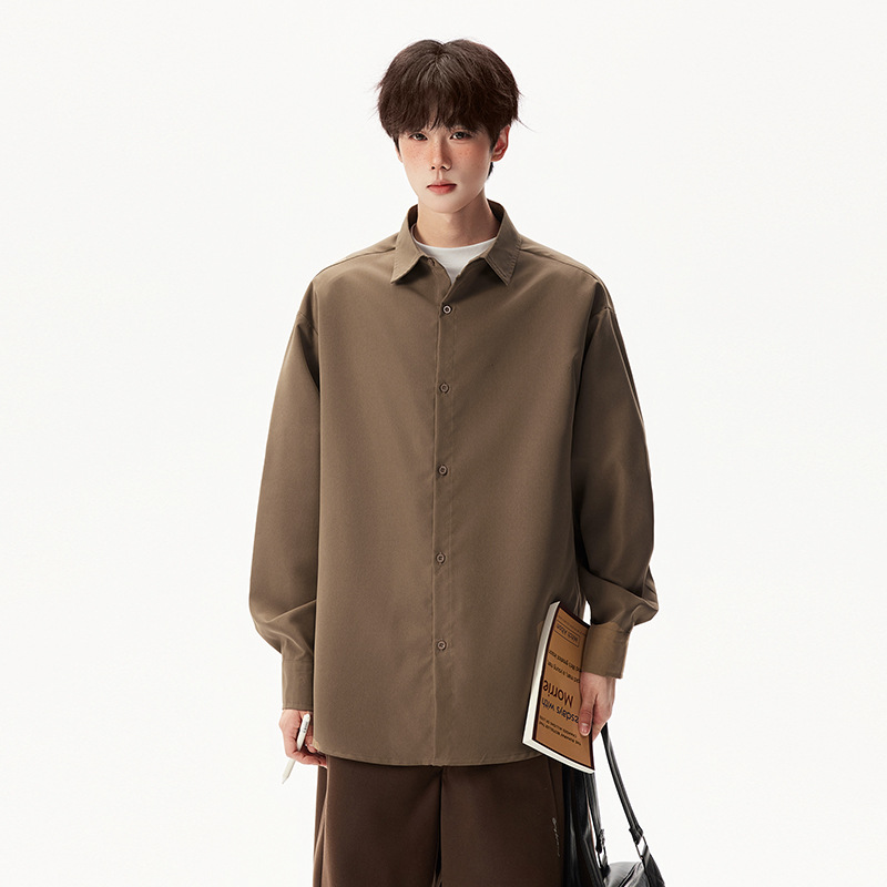 2025 가을 새로운 남성 캐주얼 솔리드 컬러 긴팔 셔츠 남성용 심플 루즈 대형 커플 유니섹스 셔츠스토어 가기
