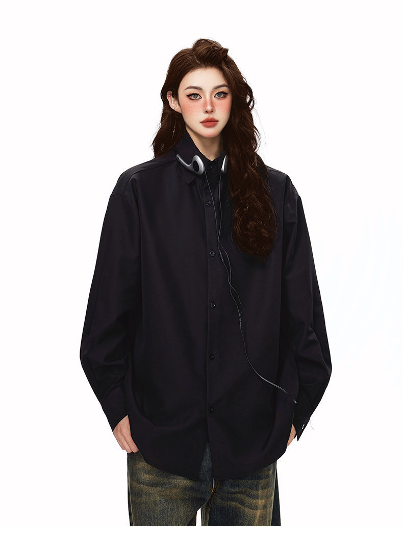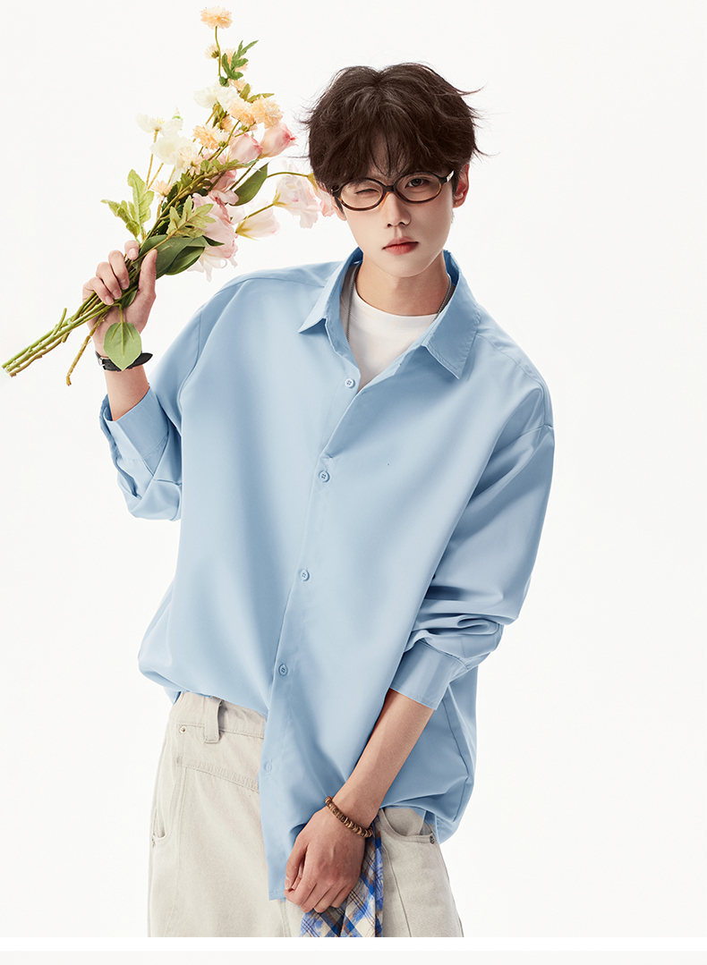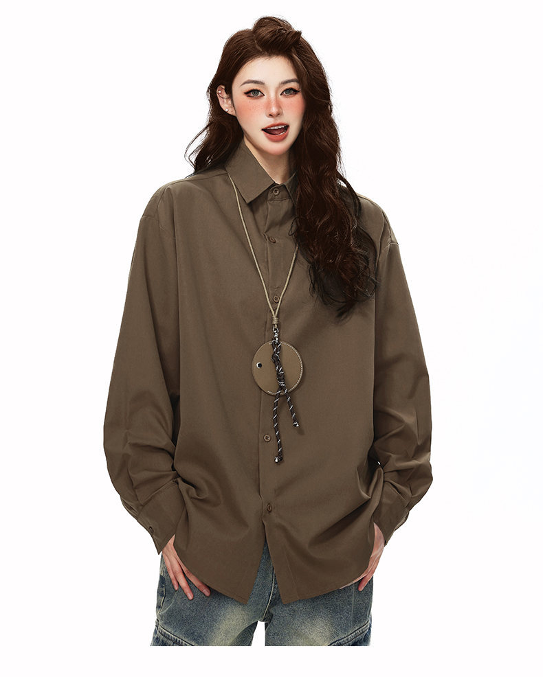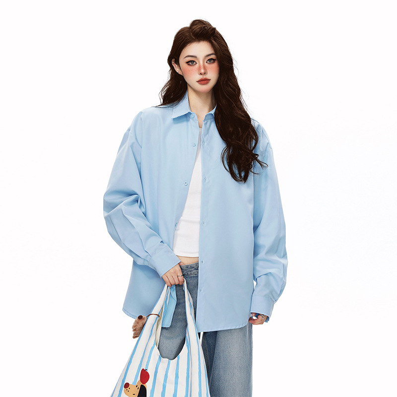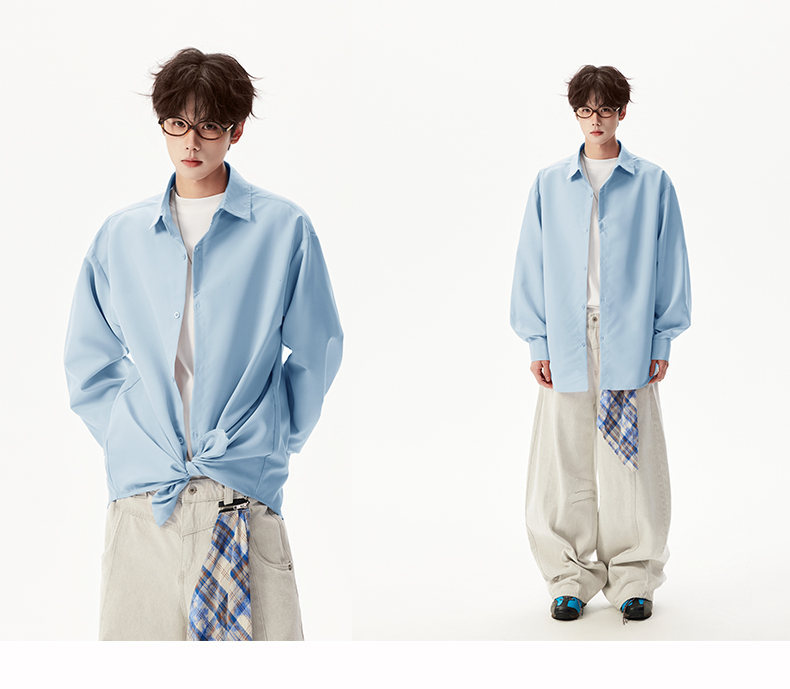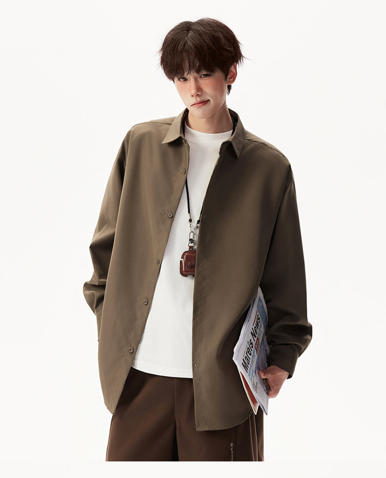 2025 가을 새로운 남성 캐주얼 솔리드 컬러 긴팔 셔츠 남성용 심플 루즈 대형 커플 유니섹스 셔츠스토어 가기