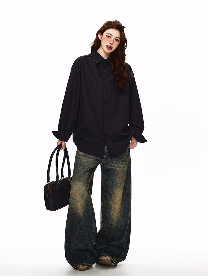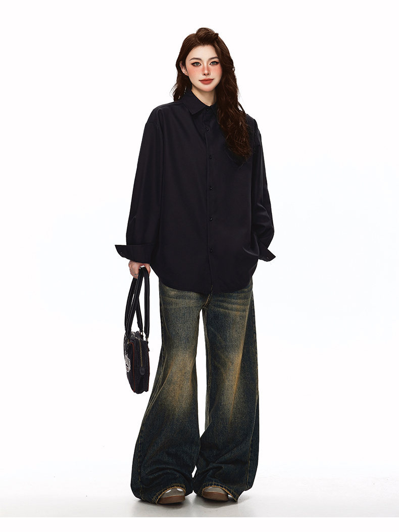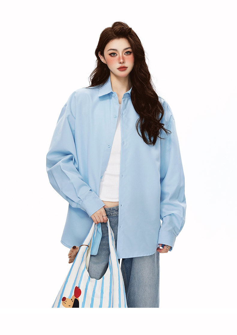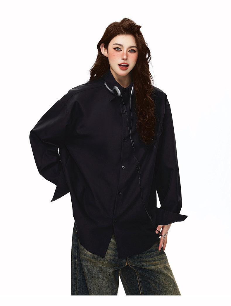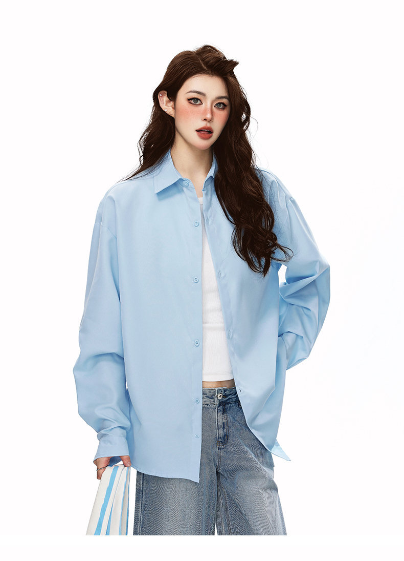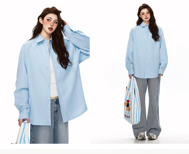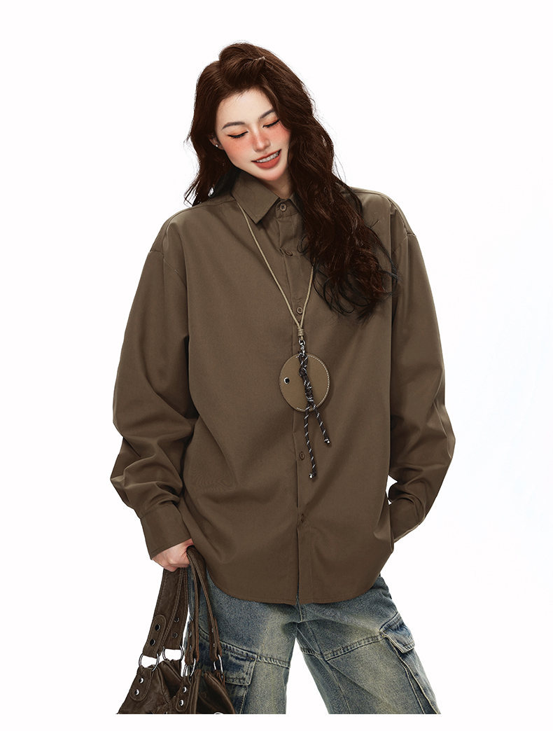 2025 가을 새로운 남성 캐주얼 솔리드 컬러 긴팔 셔츠 남성용 심플 루즈 대형 커플 유니섹스 셔츠스토어 가기
