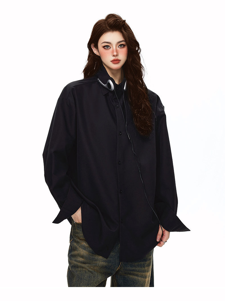 2025 가을 새로운 남성 캐주얼 솔리드 컬러 긴팔 셔츠 남성용 심플 루즈 대형 커플 유니섹스 셔츠