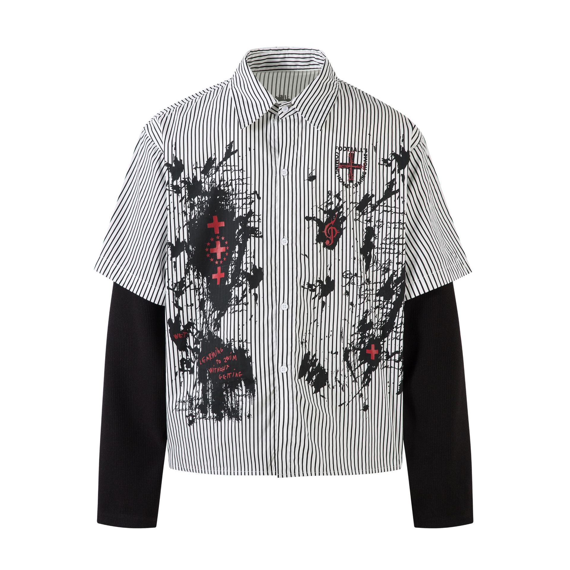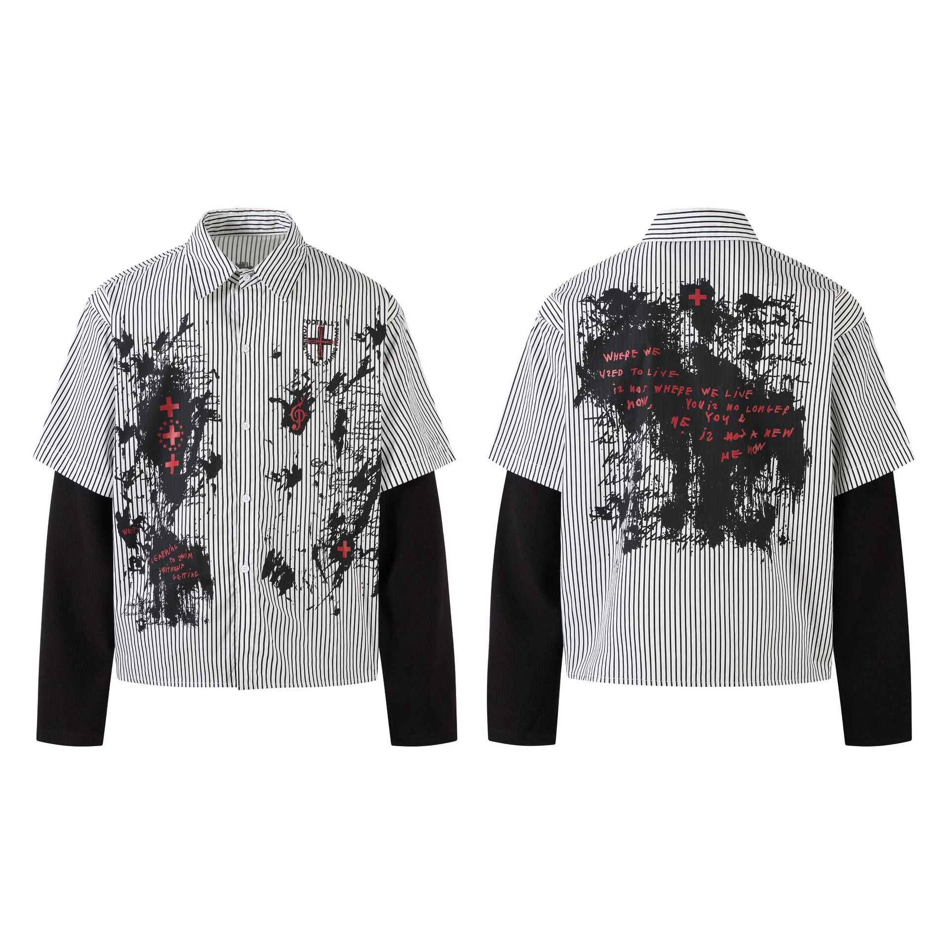 Jiayiku 남성복 2026 봄/여름 신상 미국 스트리트 패션 브랜드 다크 스타일 투피스 스트라이프 셔츠 긴팔스토어 가기