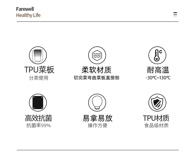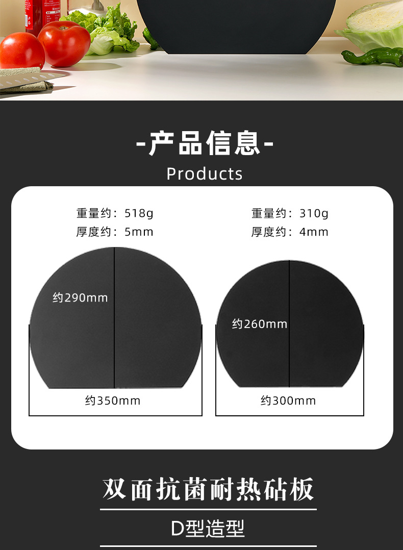 국경 간 TPU 식품 등급 D형 반원형 도마, 곰팡이 방지 및 항균, 양면 사용 가능, 내열성 및 식기 세척기 사용 가능 주방 도마스토어 가기