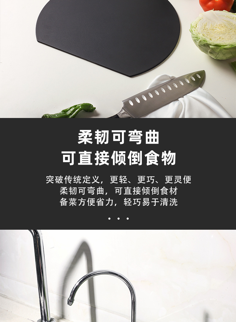 국경 간 TPU 식품 등급 D형 반원형 도마, 곰팡이 방지 및 항균, 양면 사용 가능, 내열성 및 식기 세척기 사용 가능 주방 도마