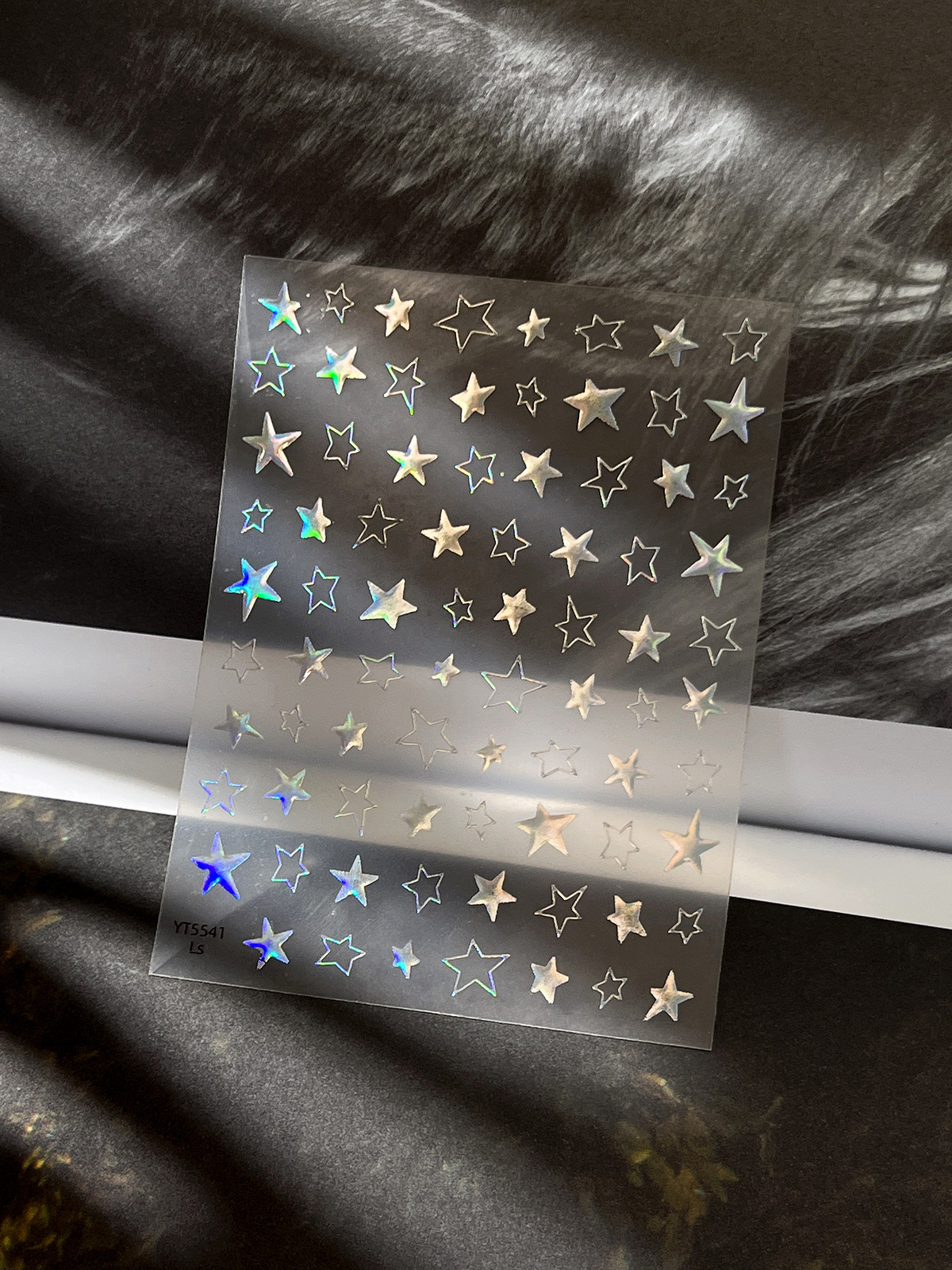 YITU 실버 레이저 불규칙한 다섯개 별 네일 아트 스티커 간단한 인기 다용도 장식 스티커 YT5541스토어 가기