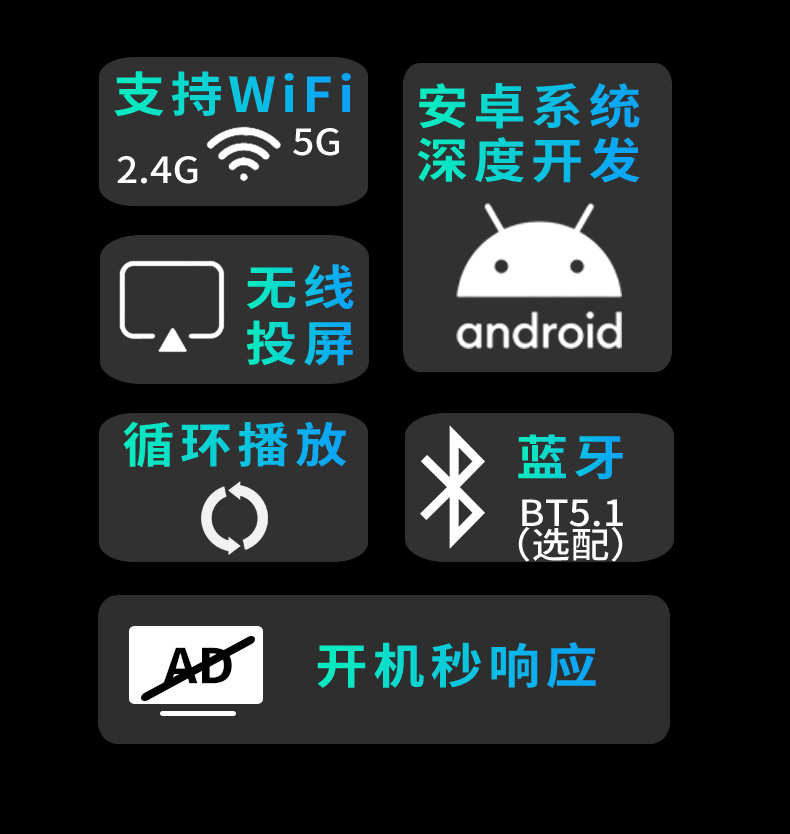 • 블랙 [터치스크린 버전] 방수 TV는 WiFi 화면 프로젝션을 지원합니다.