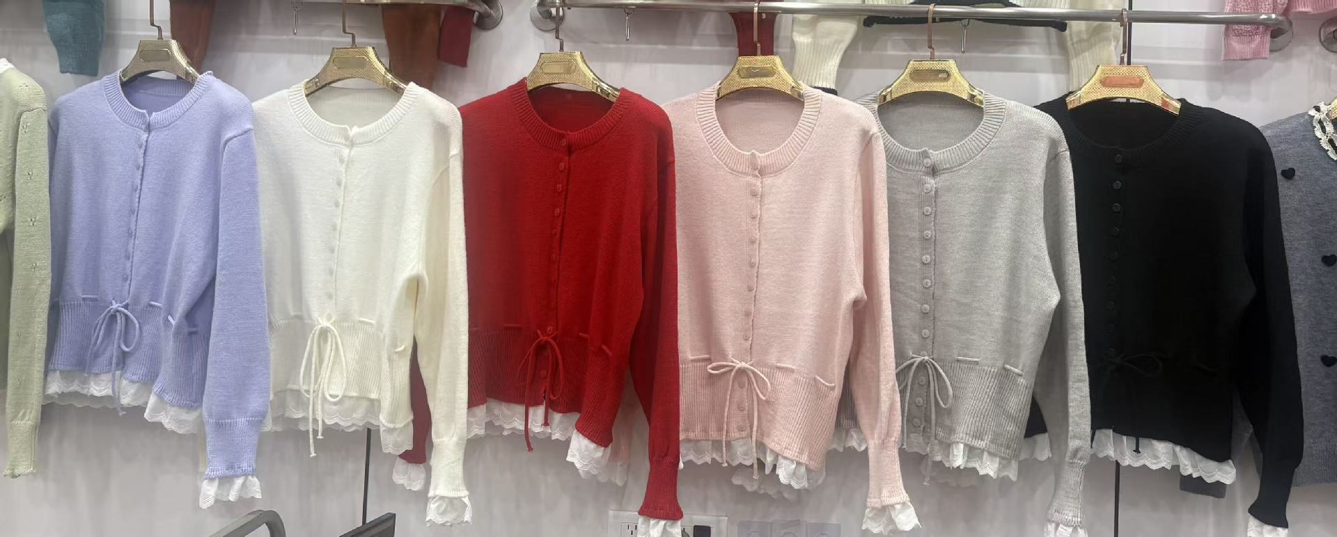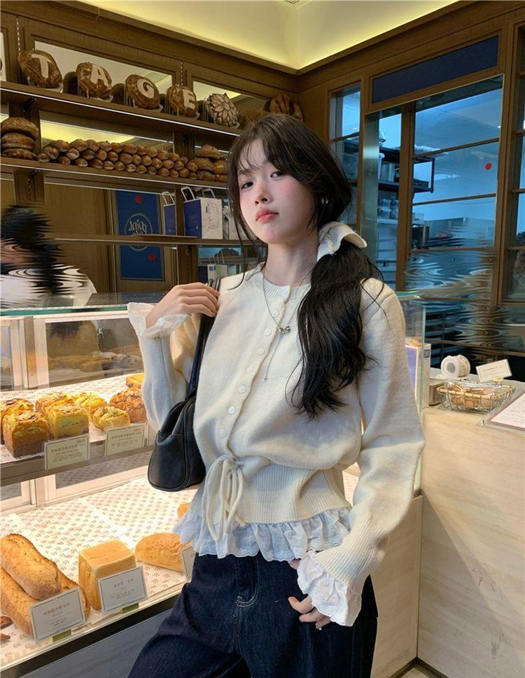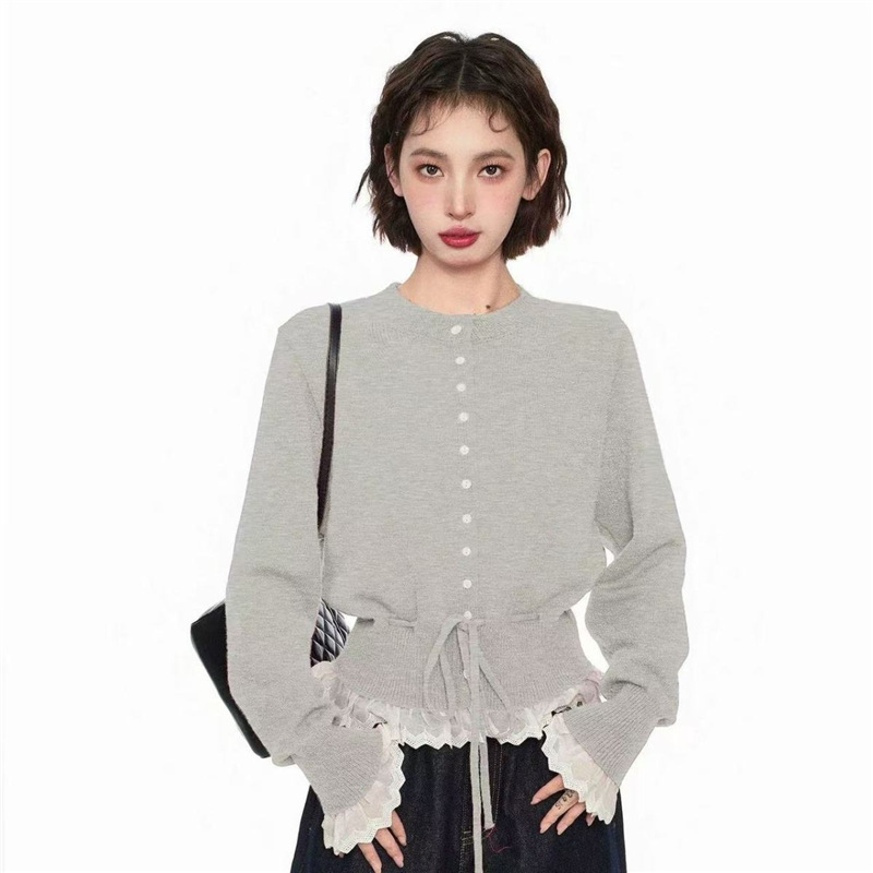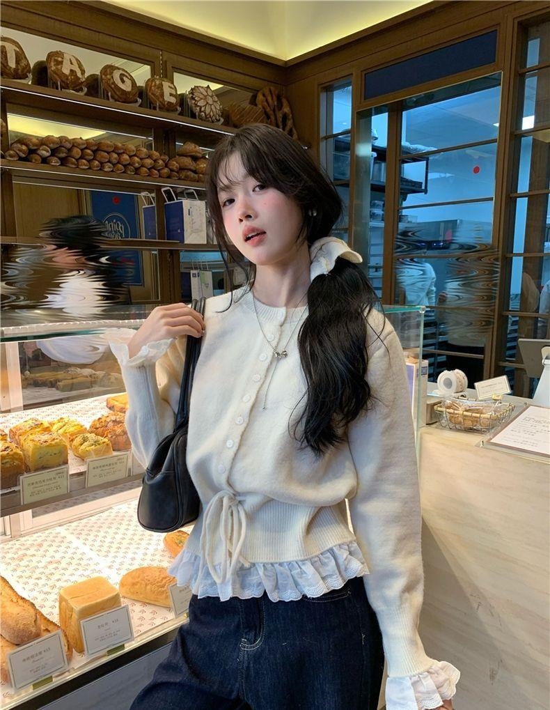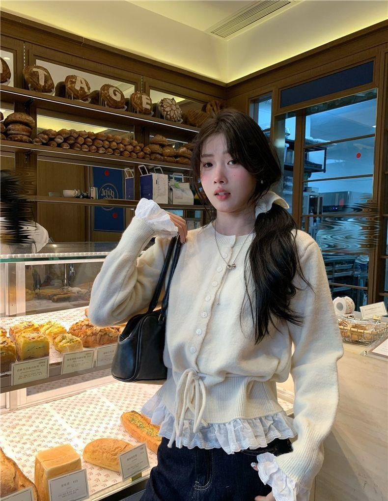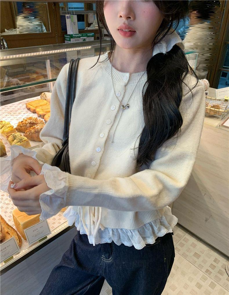韩系红色假两件圆领拼接针织开衫女秋冬季收腰设计感抽绳内搭上衣스토어 가기
