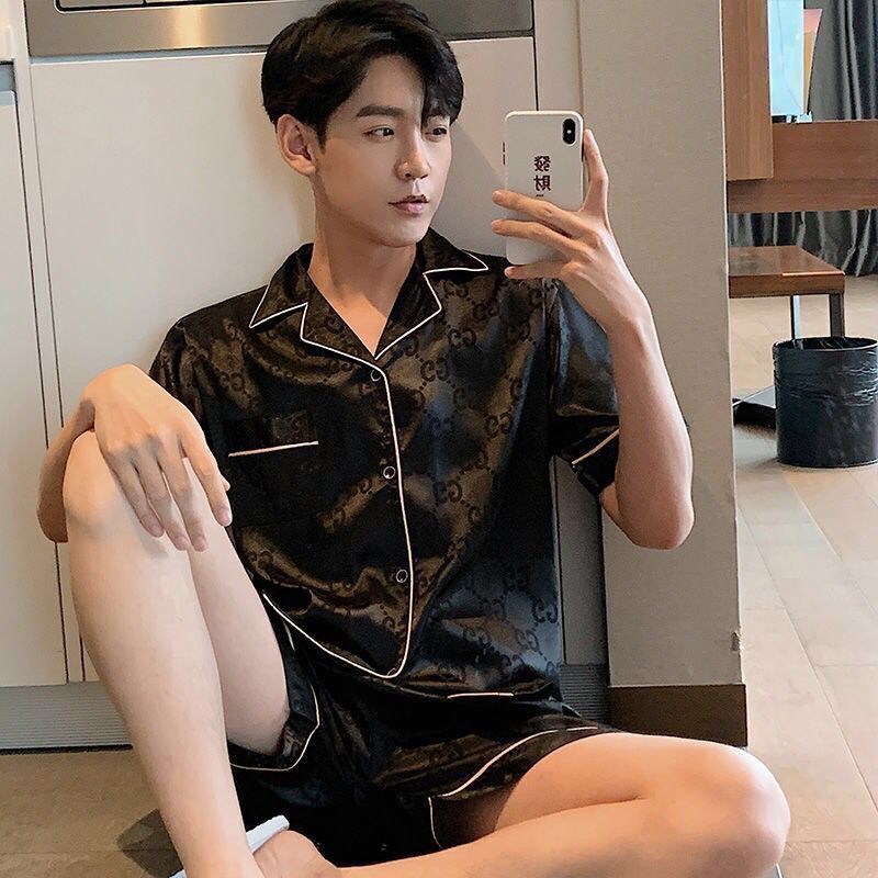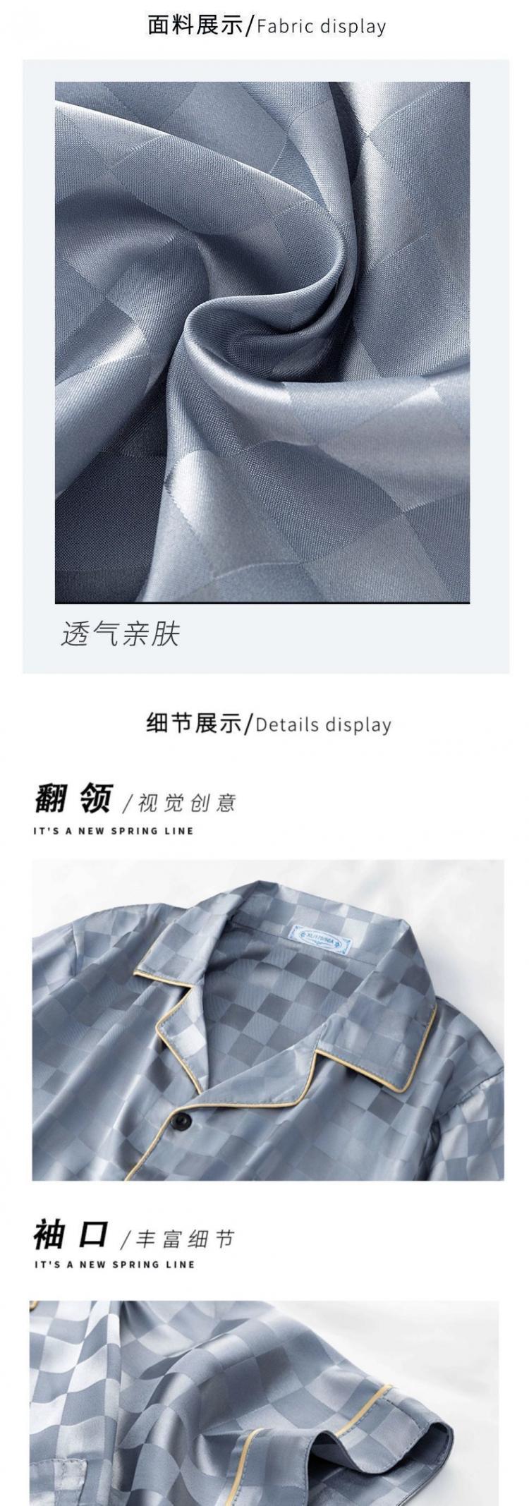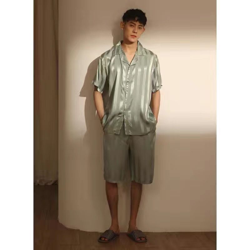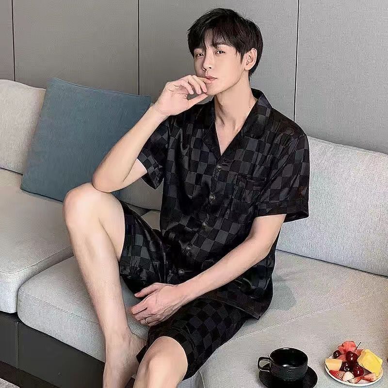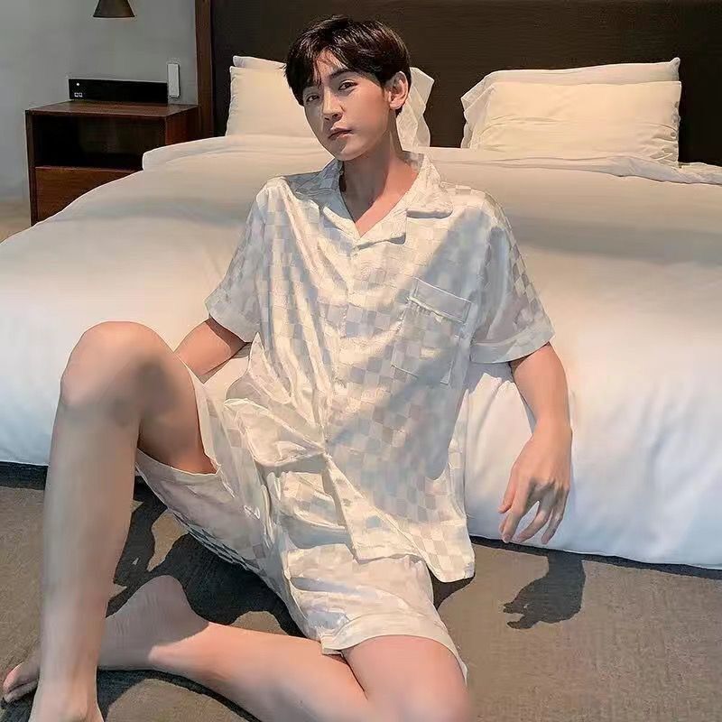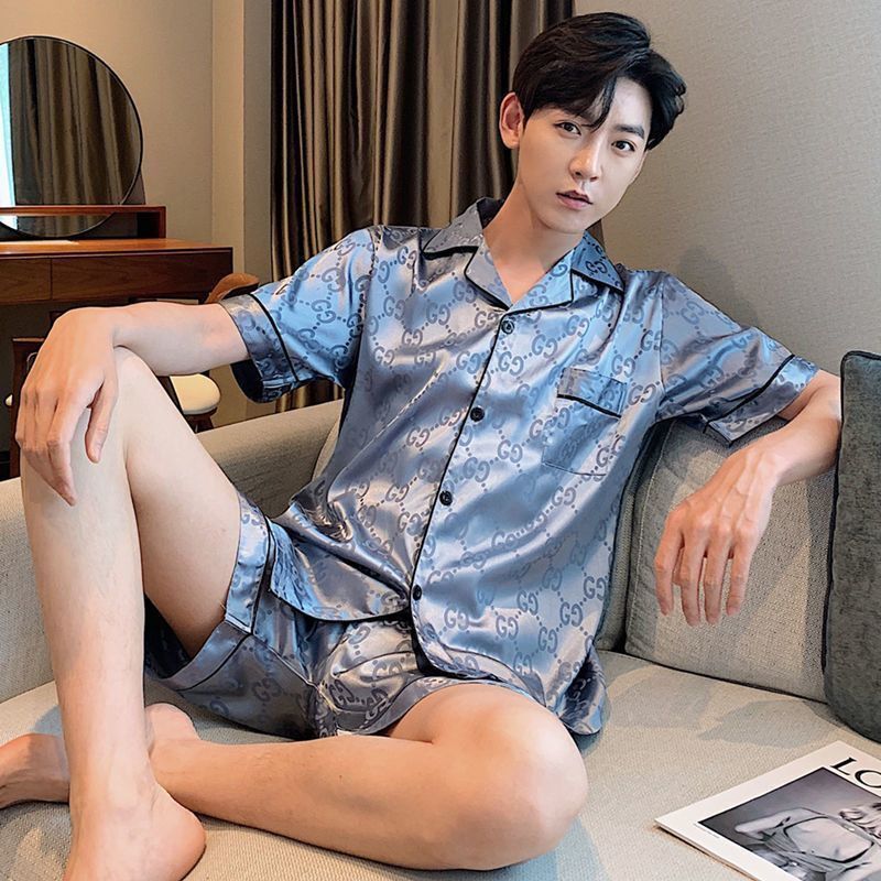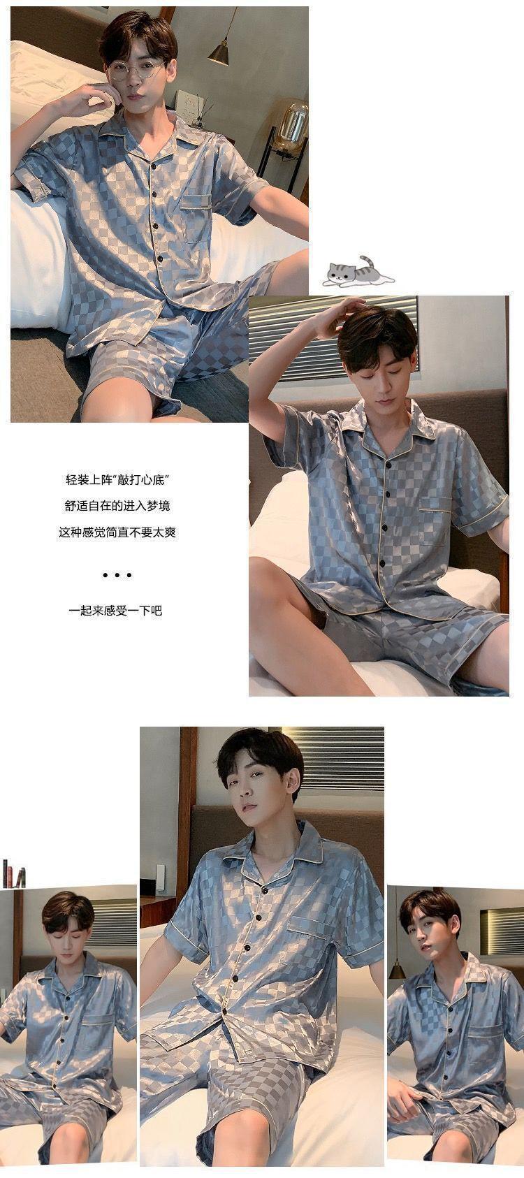 클리어런스 잠옷 남성용 아이스 실크 얇은 시원한 자카드 여름 반팔 반바지 대형 실크 홈웨어 세트스토어 가기