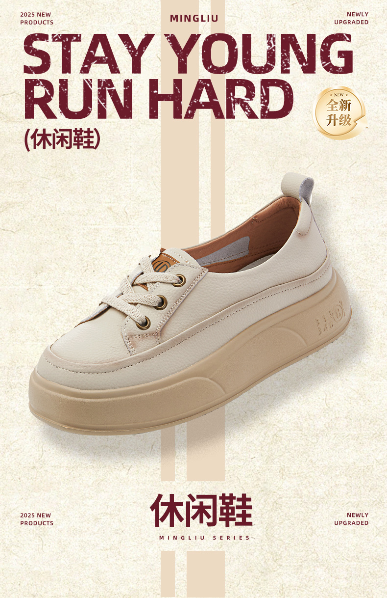 소형 사이즈 34 대형 사이즈 41 정품 가죽 흰색 신발 2025 가을 새로운 두꺼운 밑창 스포츠 운동화 민족 스타일 여성 신발