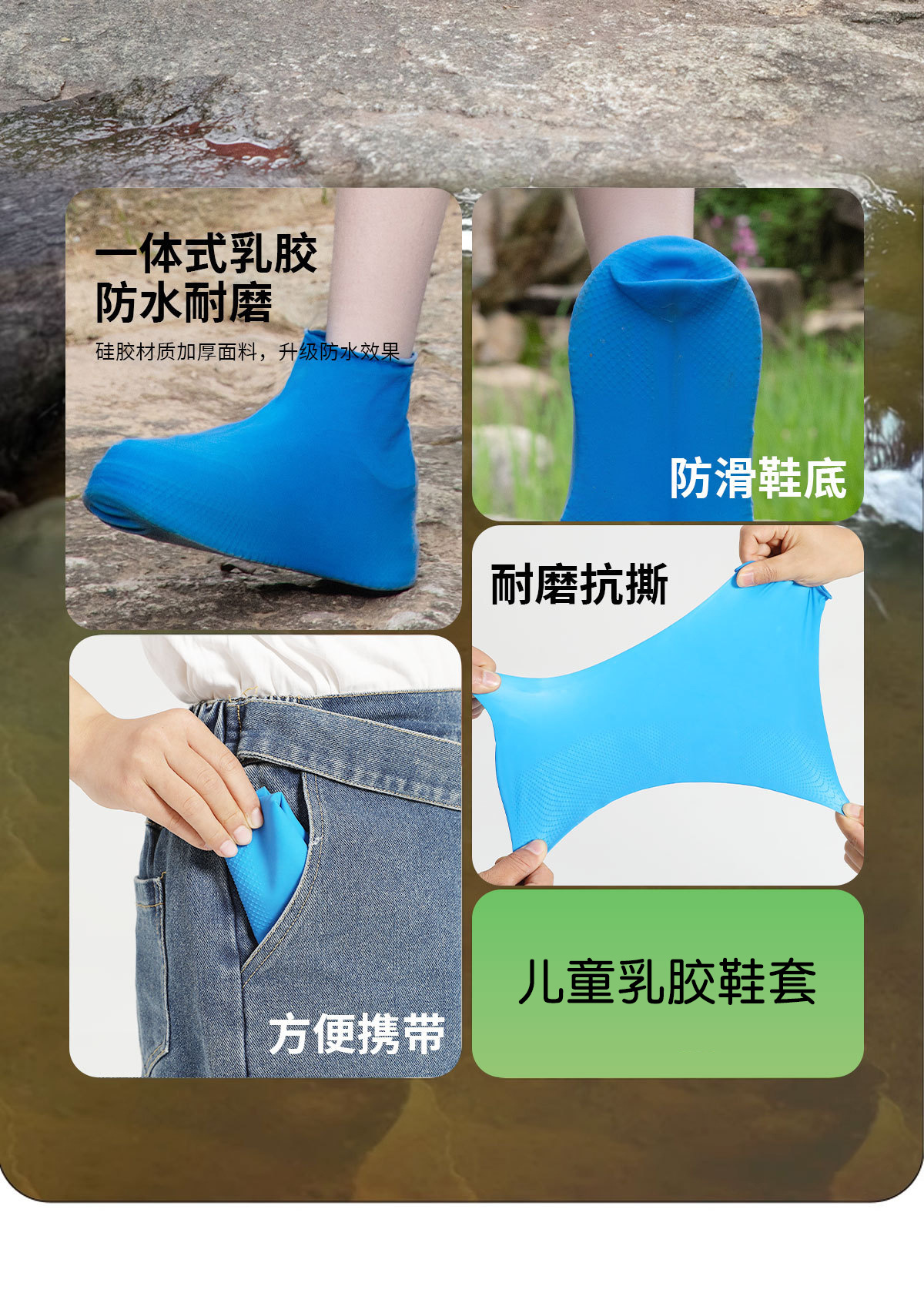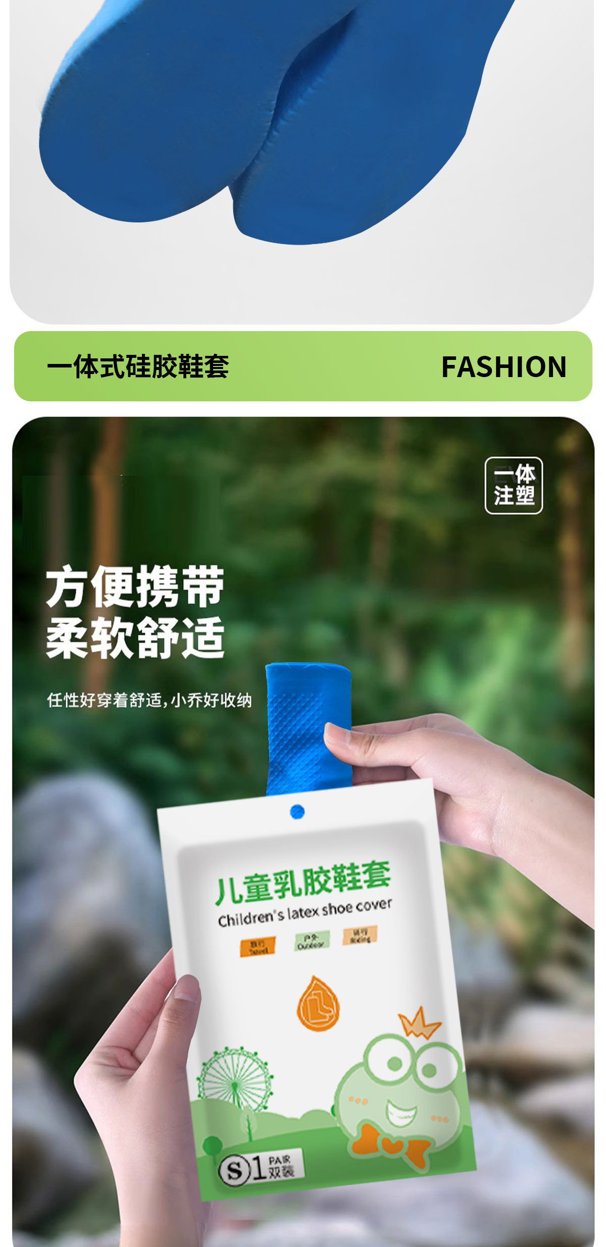 어린이용 라텍스 신발 커버는 방수 및 미끄럼 방지 기능이 있으며, 비오는 날 실외에서 착용할 수 있는 실리콘 장화로, 학생용 두꺼운 만화 스타일 특수 발 보호 장치입니다.