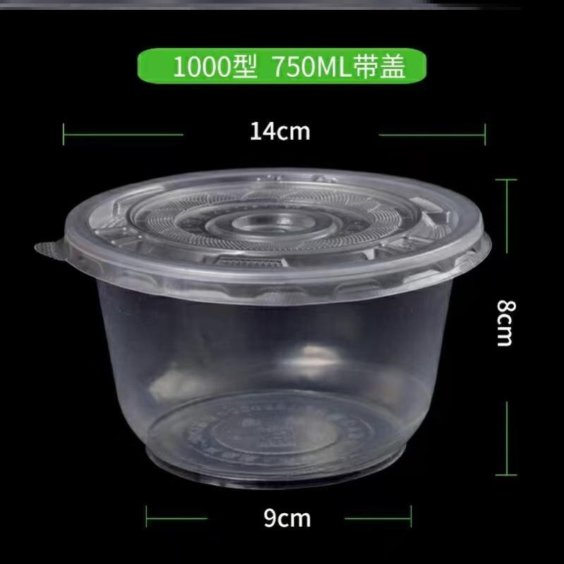 뚜껑이 없는 일회용 플라스틱 그릇, 가정용 및 상업용 일회용 투명 원형 그릇, 두꺼운 디너 박스, 포장 상자, 고온 방지스토어 가기