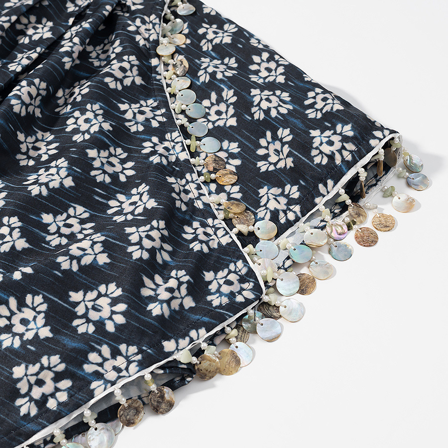 국경 간 대외 무역 여성 의류 2025 여름 유럽과 미국 스타일의 스트리트 패션 구슬 장식 프린트 짧은 치마 바지 스커트