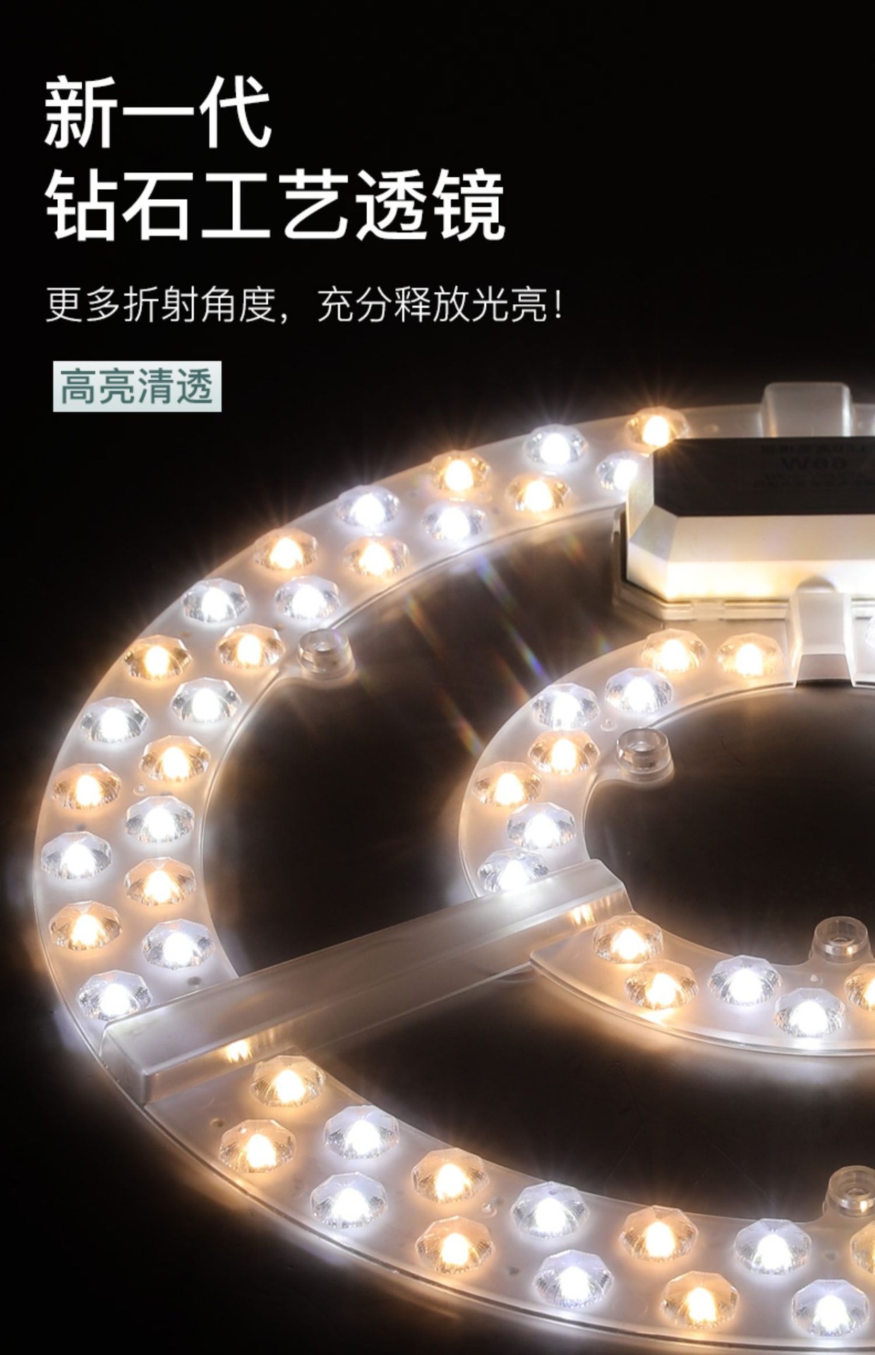 Led 천장 조명 교체 심지 이중 행 다이아몬드 램프 구슬 홀 침실 슈퍼 밝은 라운드 교체 심지 자기 흡입 3 색