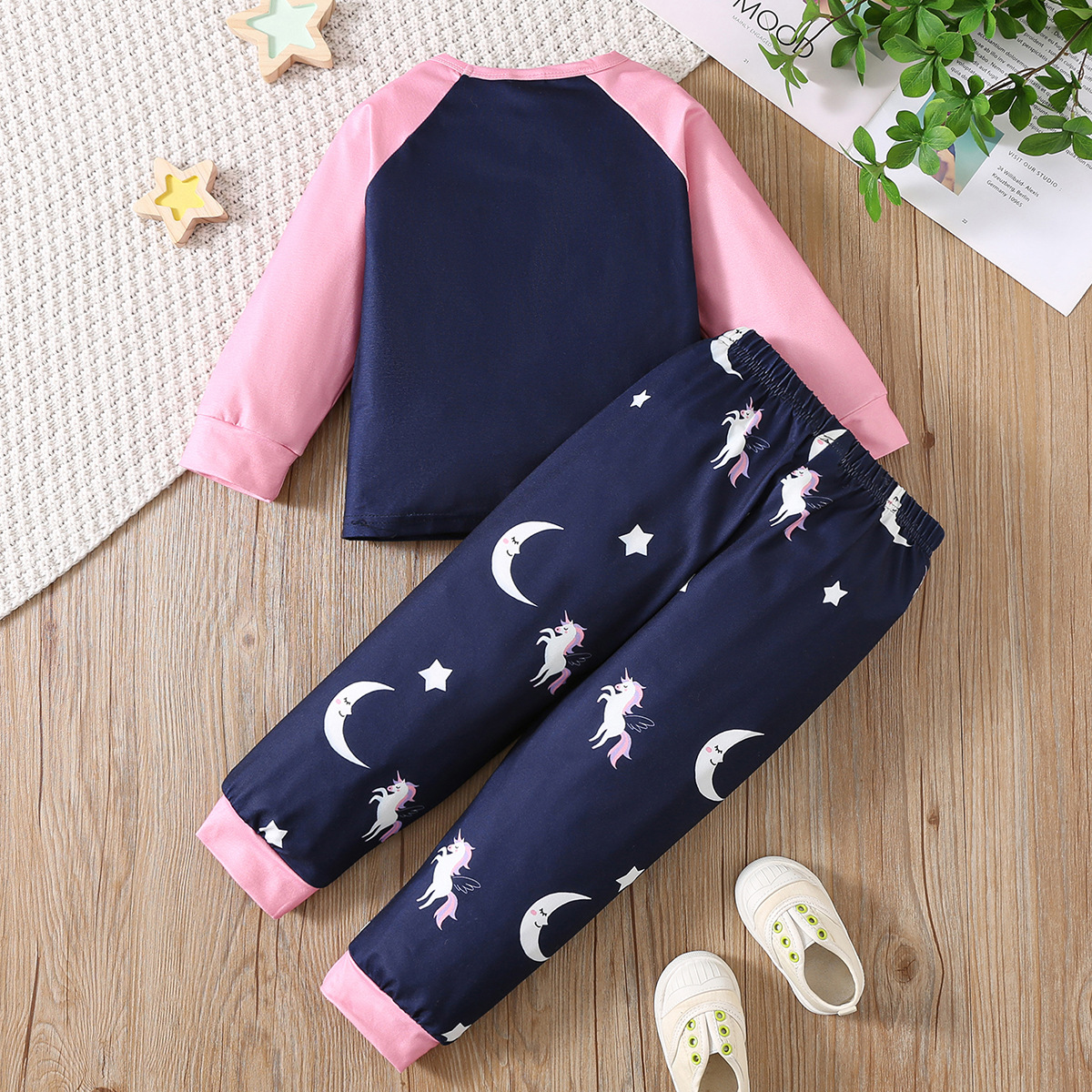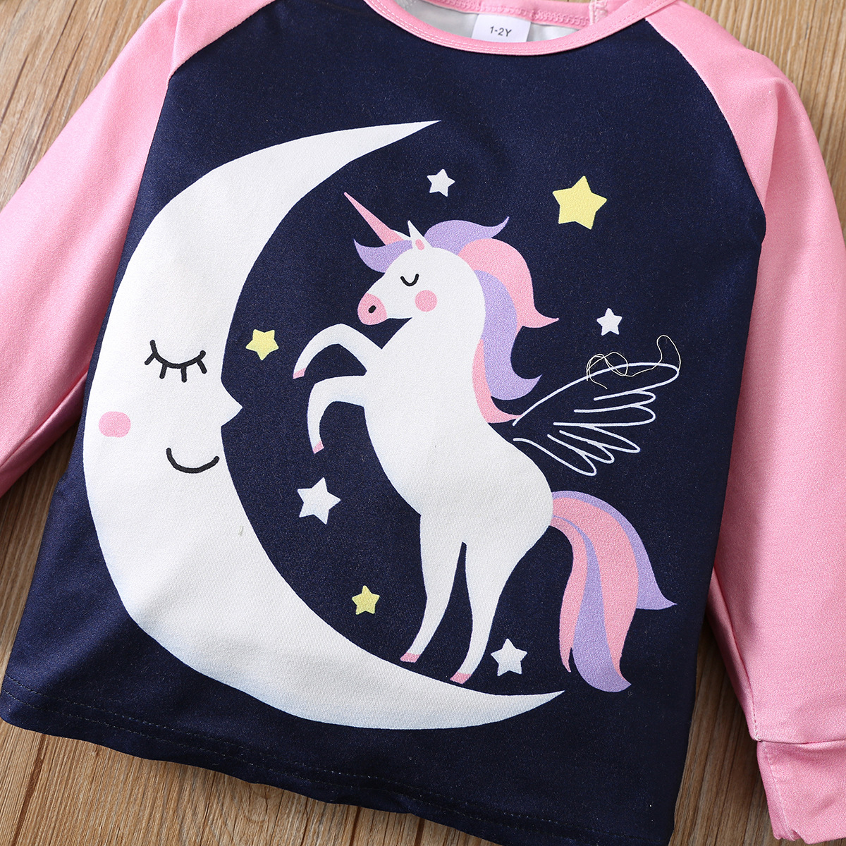 여자 봄, 가을 만화 무지개 말 달 프린트 탑과 달 프린트 바지 홈웨어 파자마 세트스토어 가기