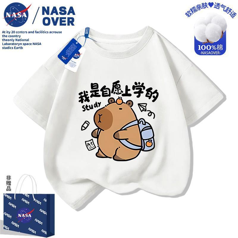 NASA 어린이 소년 소녀 여름 2025 새로운 Kapibara 반팔 티셔츠 순면 반팔 패션 탑스토어 가기