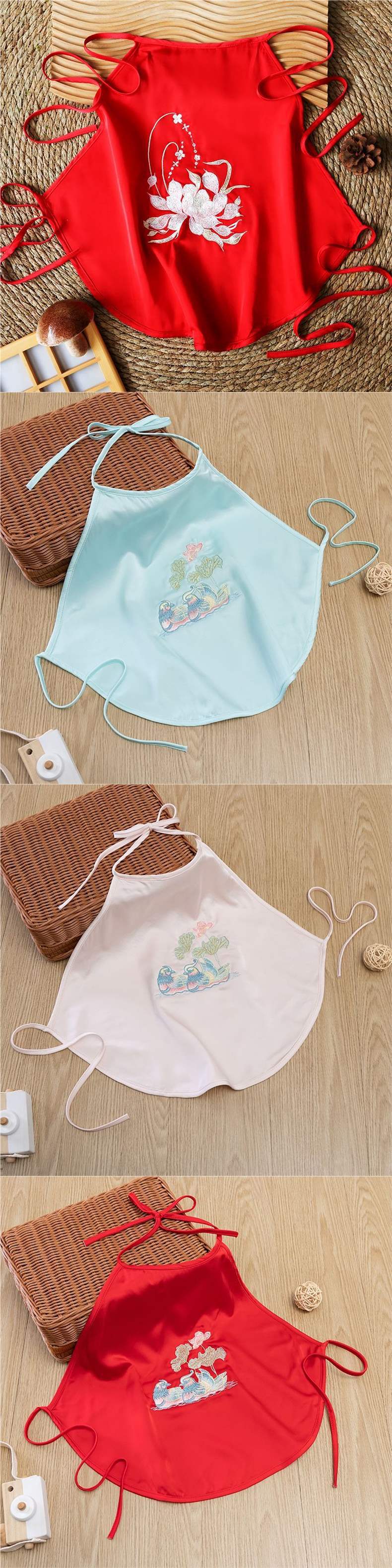 여성용 수자수 자수 배꼽 벨트, 성인용 실크 슬링, 섹시한 Hanfu 중국 스타일 클래식 백리스 속옷 및 잠옷