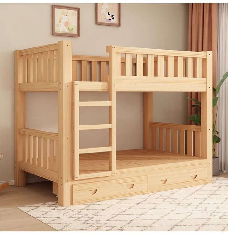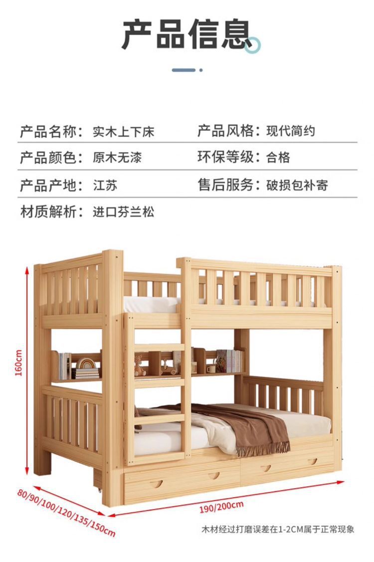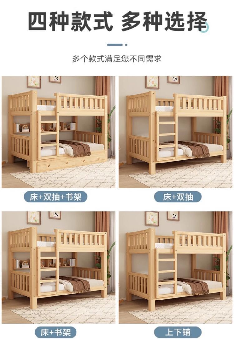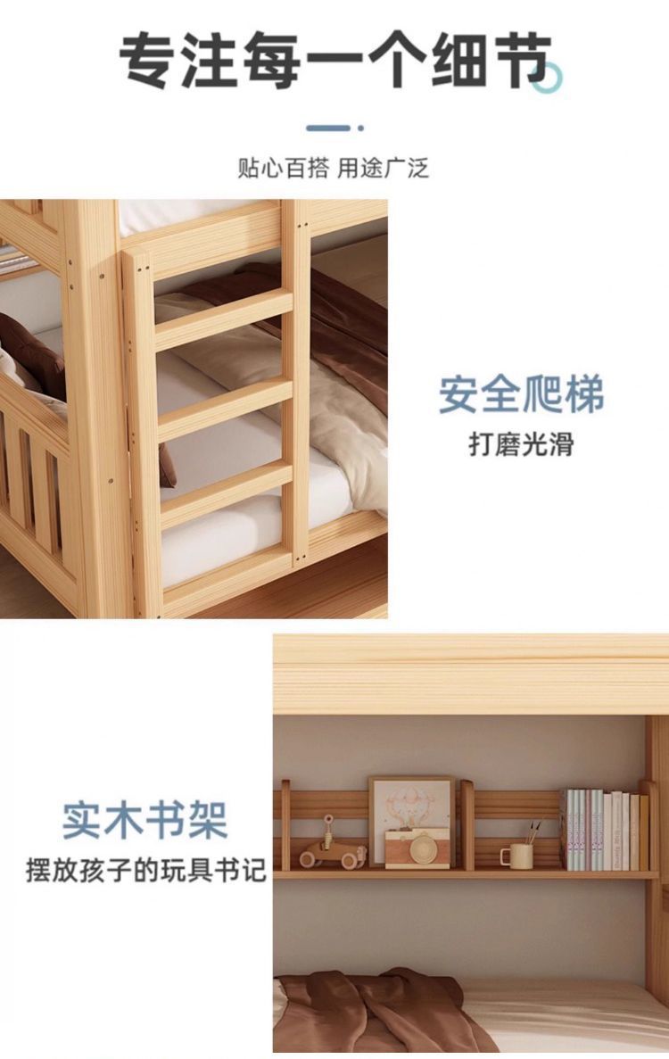 가정용 두꺼운 원목 이층침대, 소형 가정용 높낮이 침대, 위아래로 동일한 폭의 이층침대, 기숙사 이층침대스토어 가기