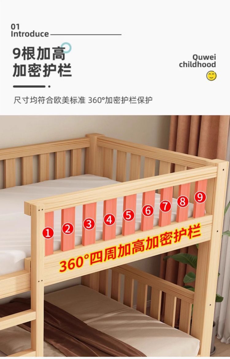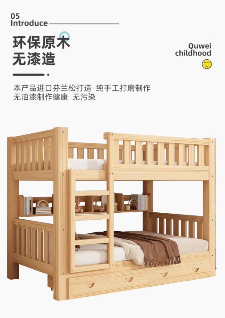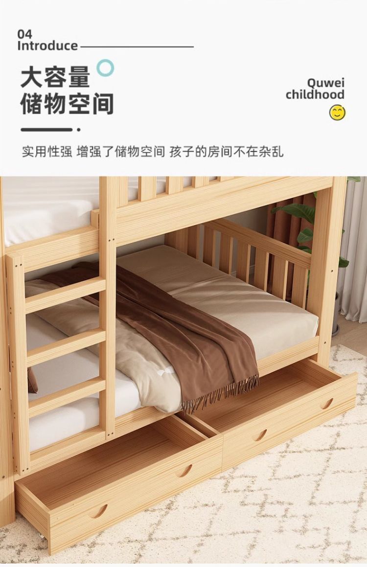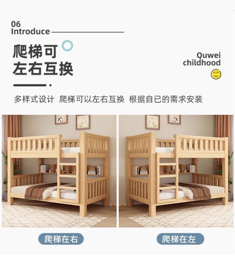 가정용 두꺼운 원목 이층침대, 소형 가정용 높낮이 침대, 위아래로 동일한 폭의 이층침대, 기숙사 이층침대스토어 가기