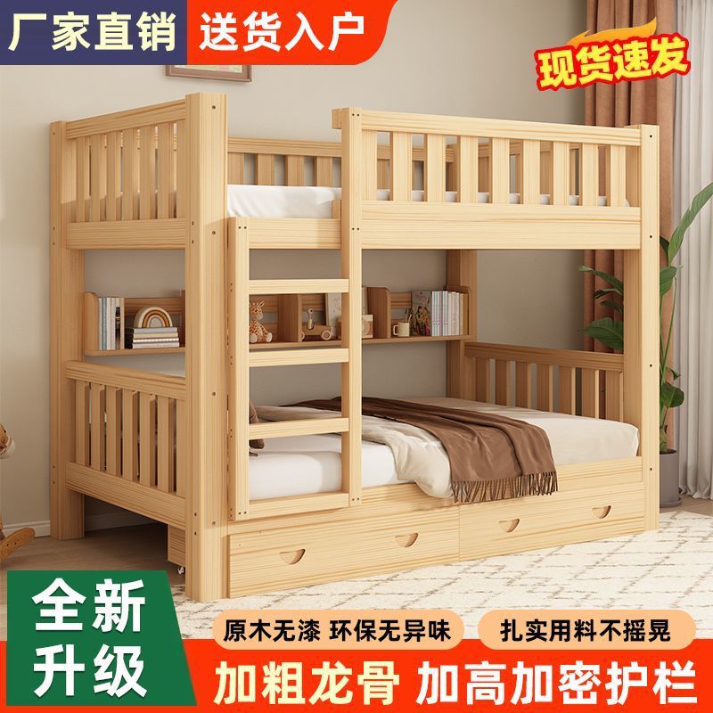 가정용 두꺼운 원목 이층침대, 소형 가정용 높낮이 침대, 위아래로 동일한 폭의 이층침대, 기숙사 이층침대
