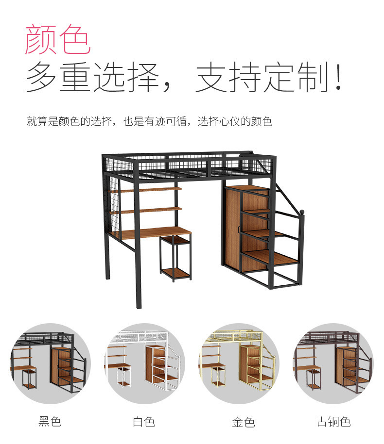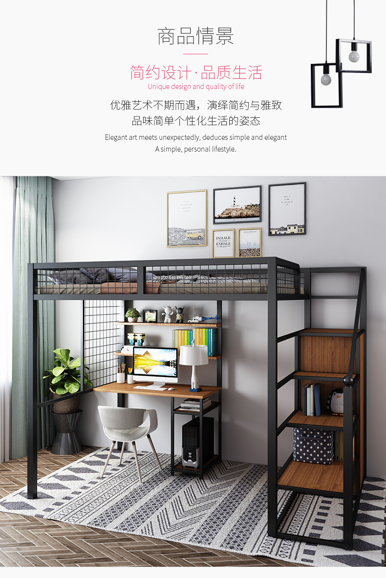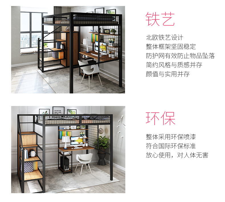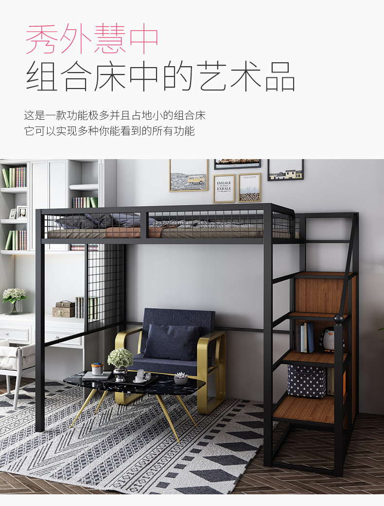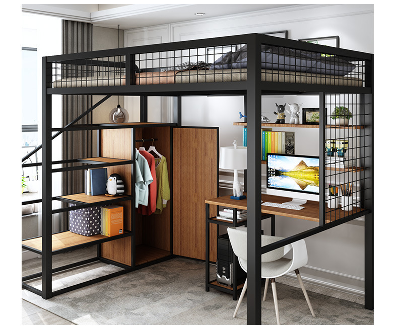 현대 철제 학생용 이층 침대, 침대 아래 테이블, 기숙사 침대, 소형 로프트 아파트, 공간 절약형 철제 프레임 침대스토어 가기