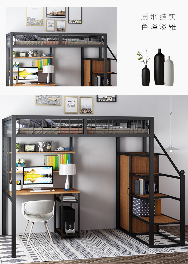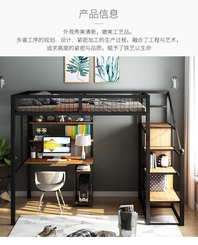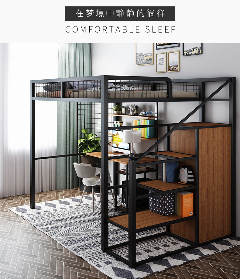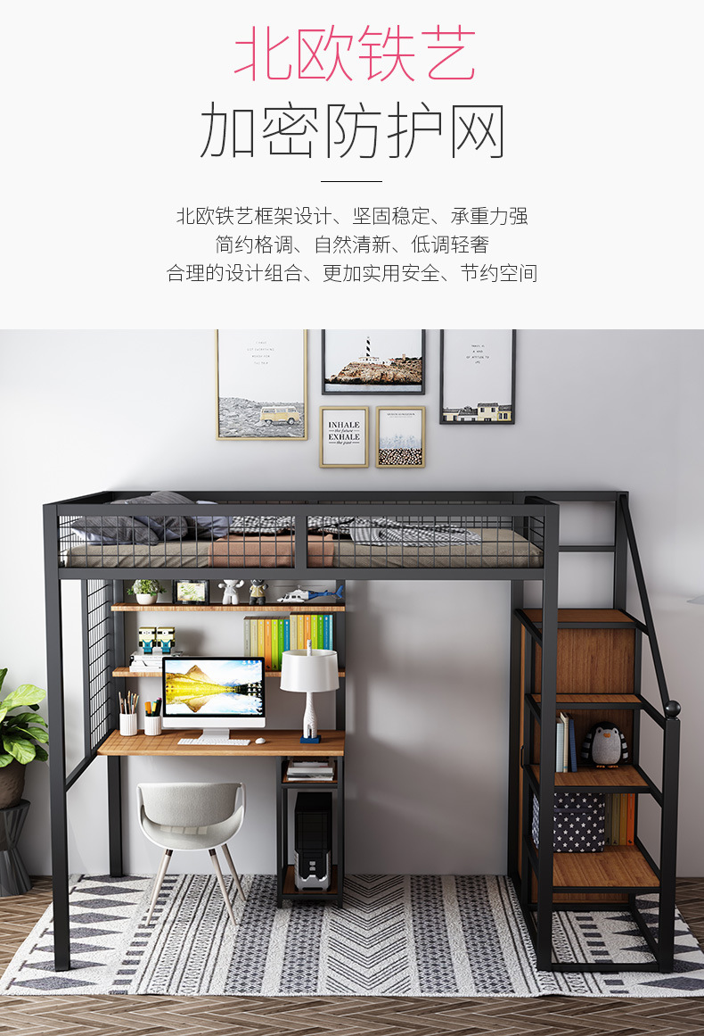 현대 철제 학생용 이층 침대, 침대 아래 테이블, 기숙사 침대, 소형 로프트 아파트, 공간 절약형 철제 프레임 침대스토어 가기