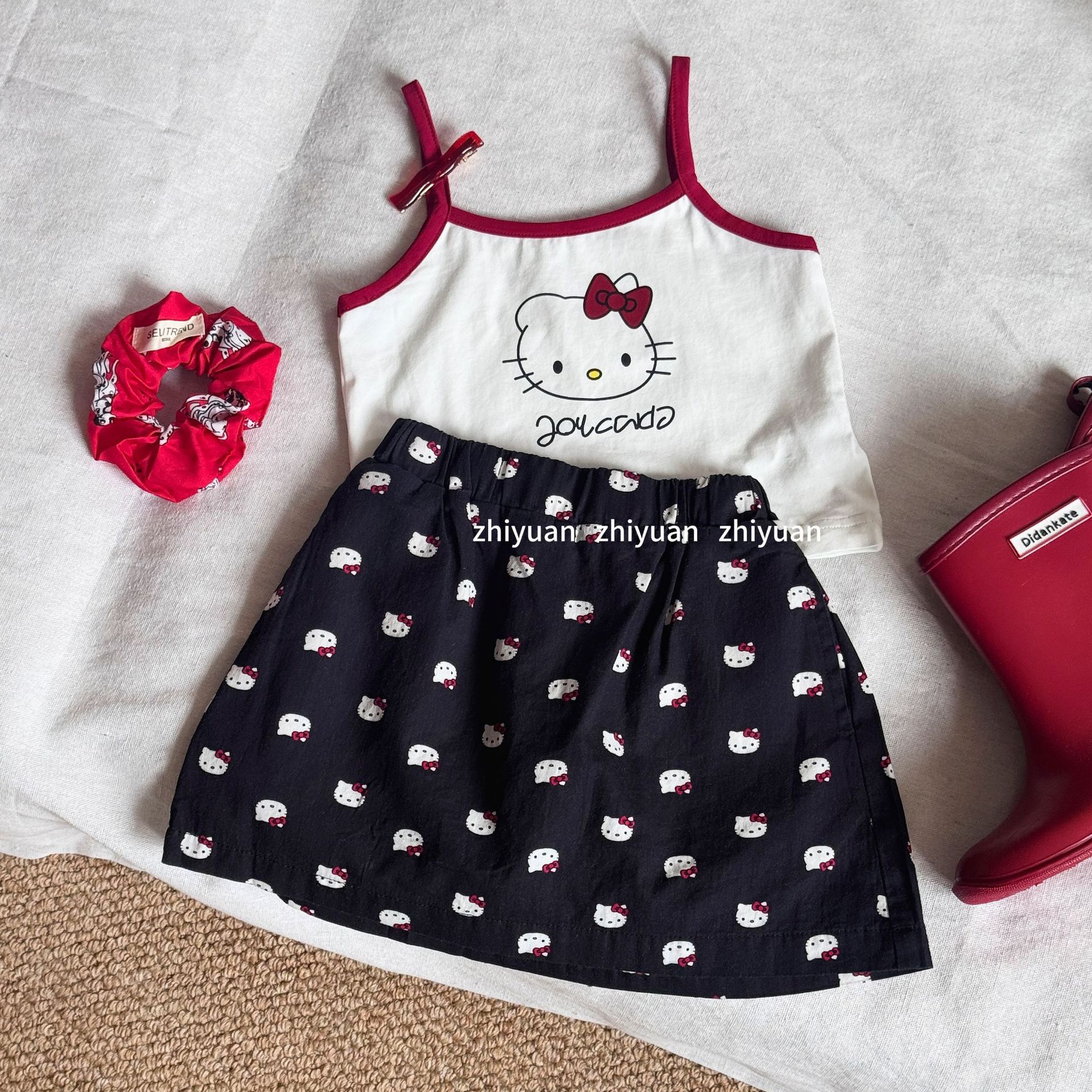여자 여름 새 스타일 서스펜더 투피스 한국어 버전 KT 면화 귀여운 민소매 티셔츠 스커트 정장 여자 의류스토어 가기