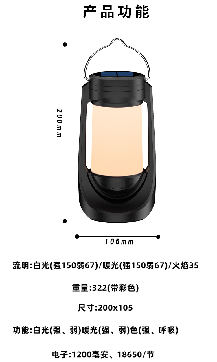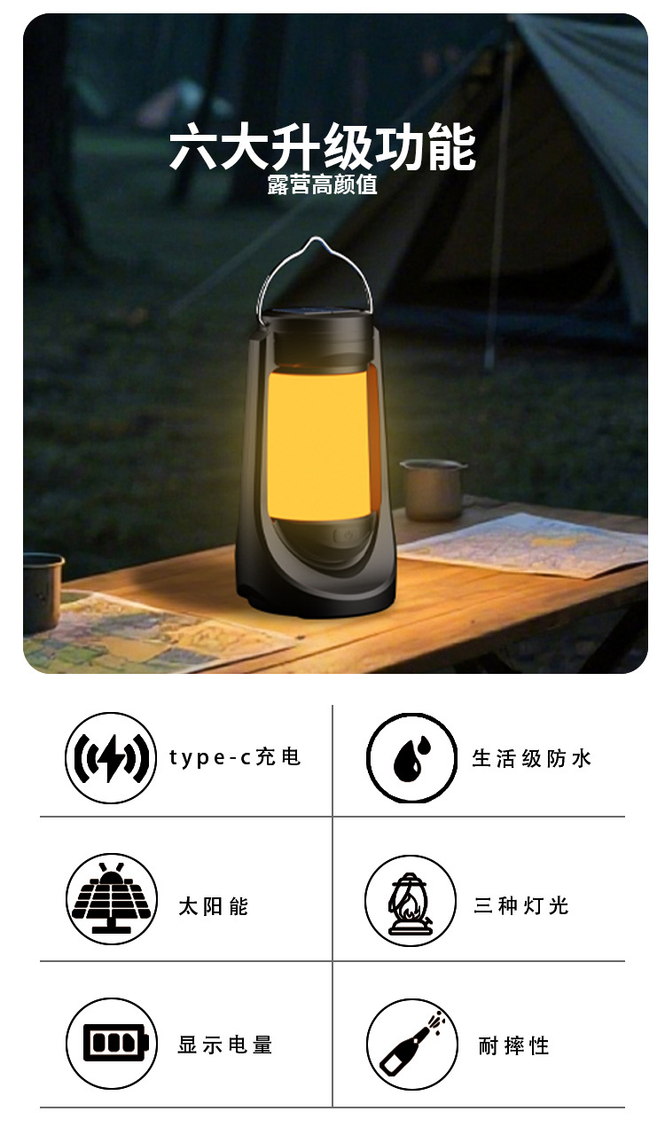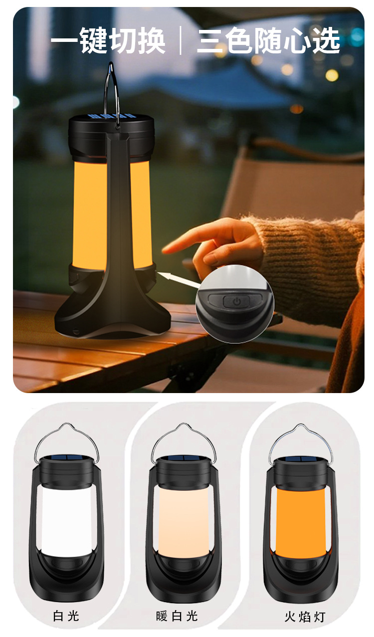새로운 다기능 램프 LED 캠핑 램프 텐트 램프 태양열 충전 휴대용 휴대용 작업 램프 불꽃 램프