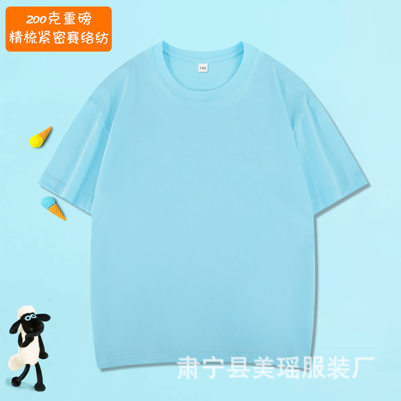 소년과 소녀를위한 여름 어린이 반팔 티셔츠 순수 코튼 반팔 솔리드 컬러 인쇄 가능한 패턴 클래스 유니폼 캠퍼스 도매 사용자 정의