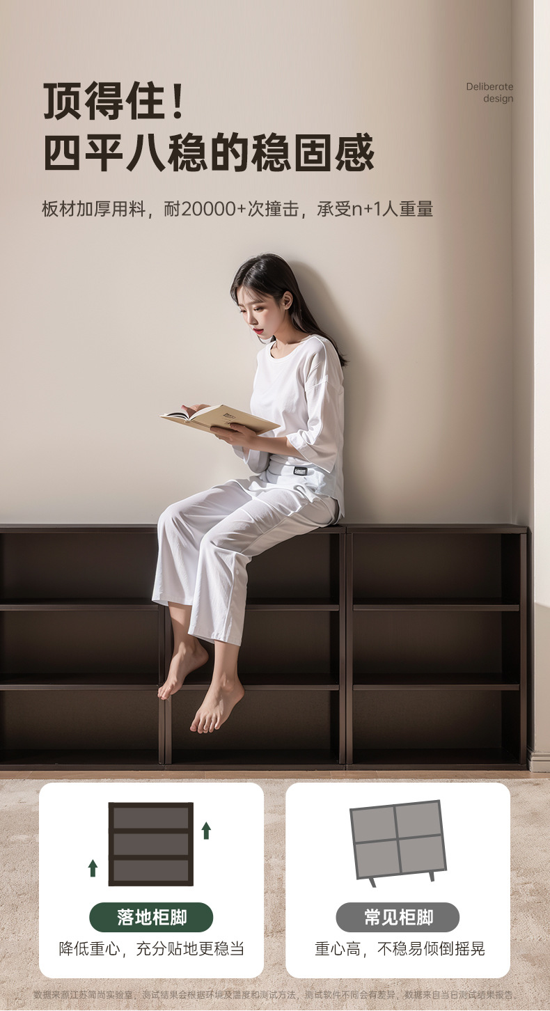 • [프리미엄 블랙 - 8칸 캐비닛] 120*30*75CM - 후면 패널 없음❥엄선된 고품질 밀도 보드