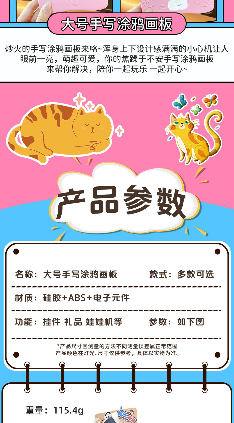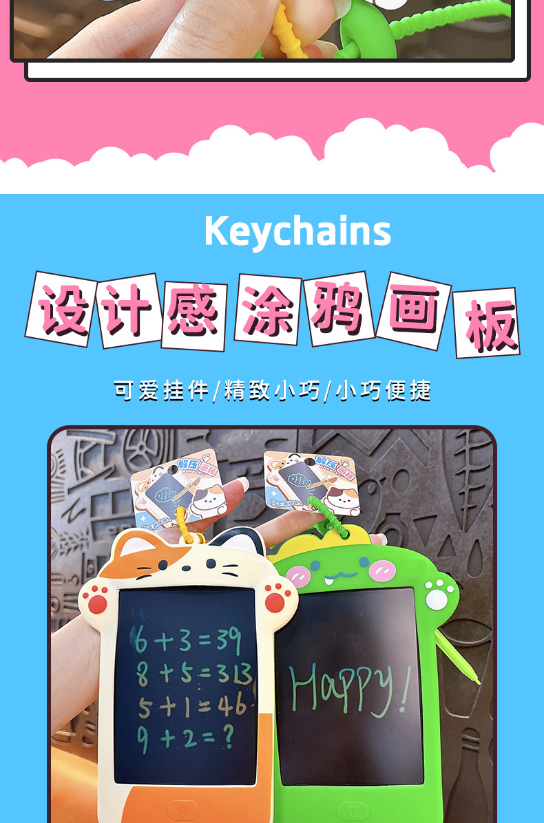 대형 LCD 쓰기 태블릿 키 체인 만화 낙서 귀여운 애완 동물 드로잉 보드 장난감 교육 학생 학교 가방 선물 도매
