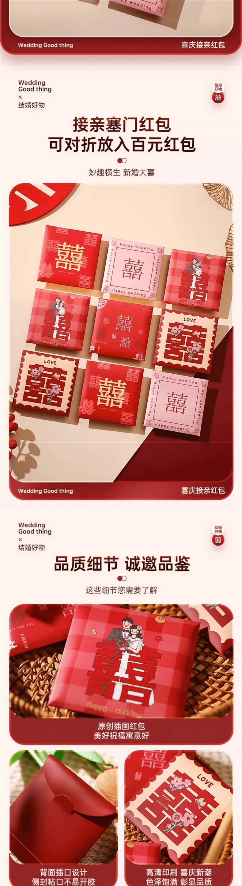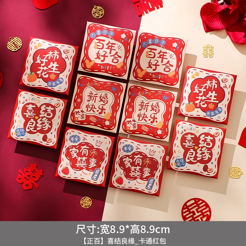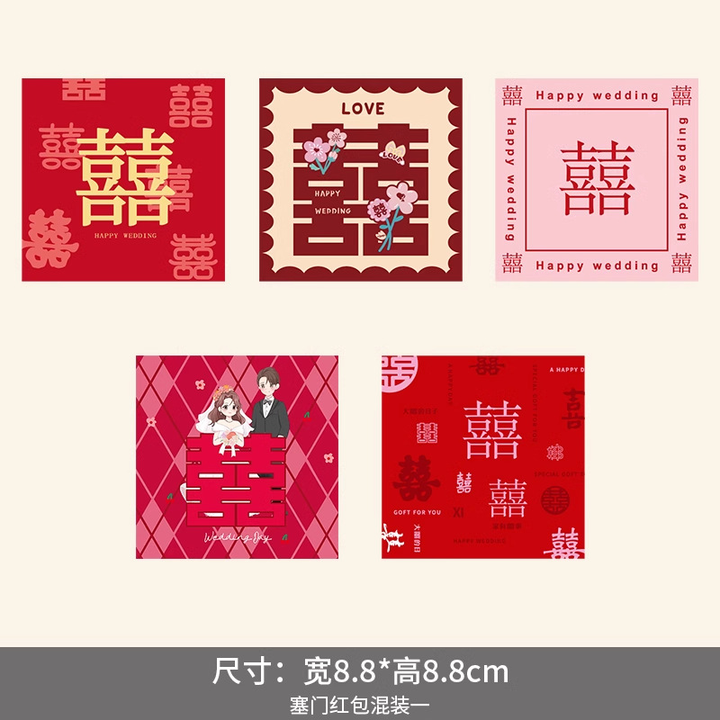 결혼식을 위한 도어 블랭킹 레드 패킷, 작은 사각형, 약혼, 창의적인 결혼식, 도어 블랭킹, 행복한 말이 담긴 레드 패킷스토어 가기