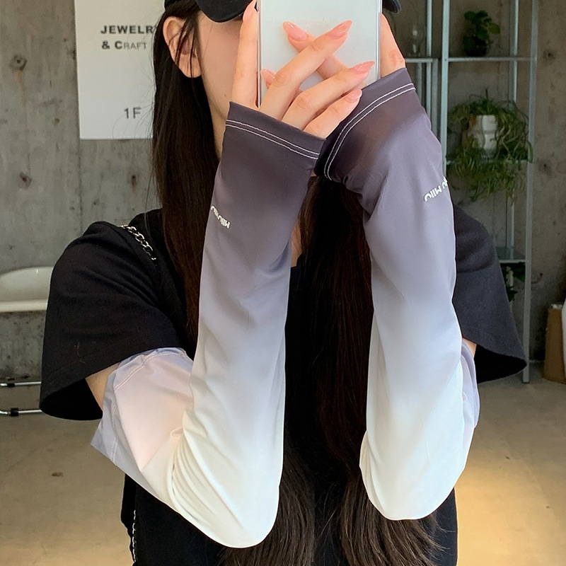 2024 새로운 그라디언트 얼음 실크 아이스 슬리브 여름 태양 보호 슬리브 여성 느슨한 장갑 슬리브 안티 uv 핸드 슬리브 코튼스토어 가기