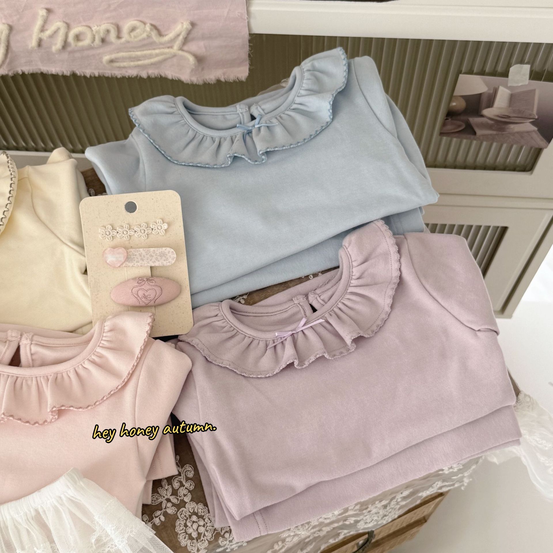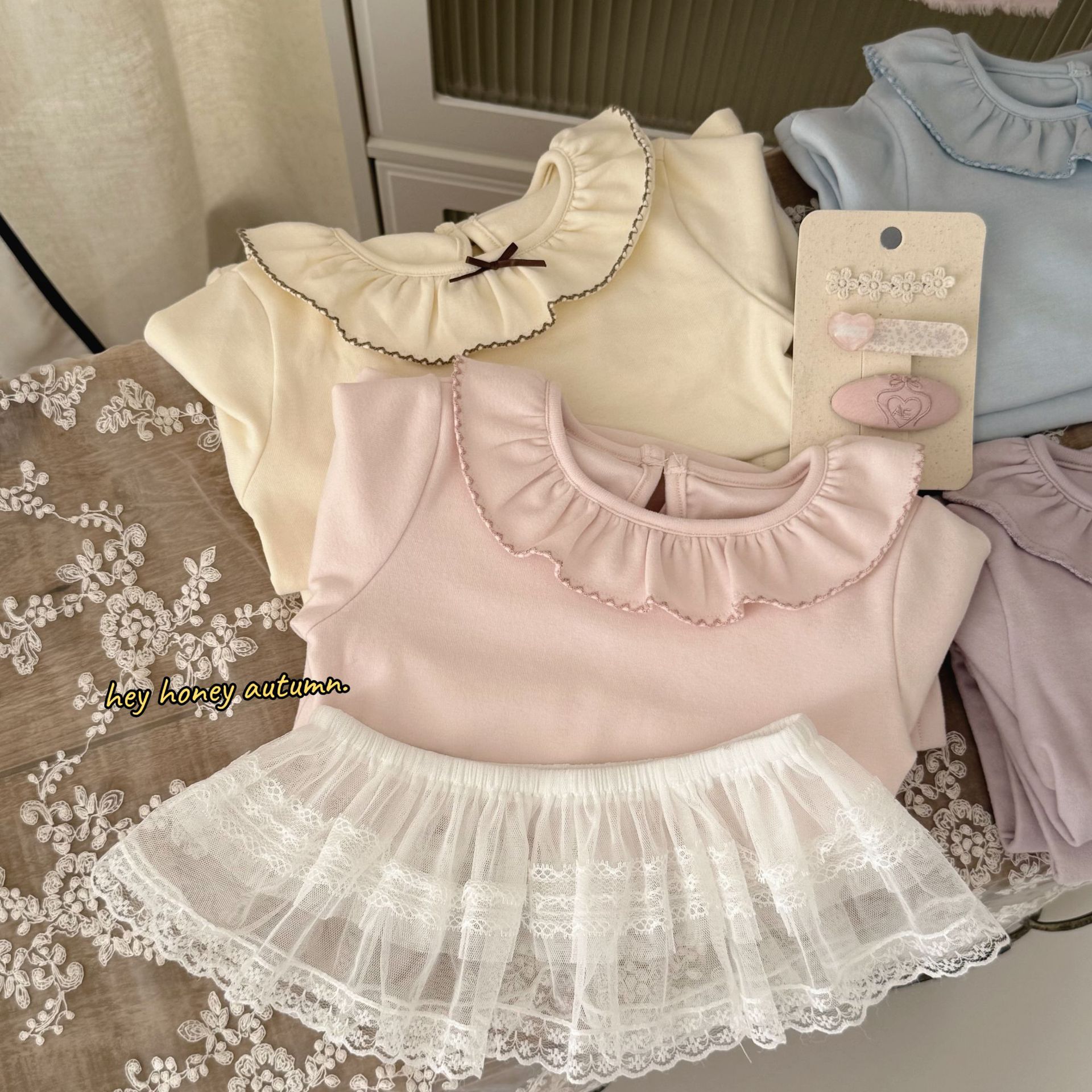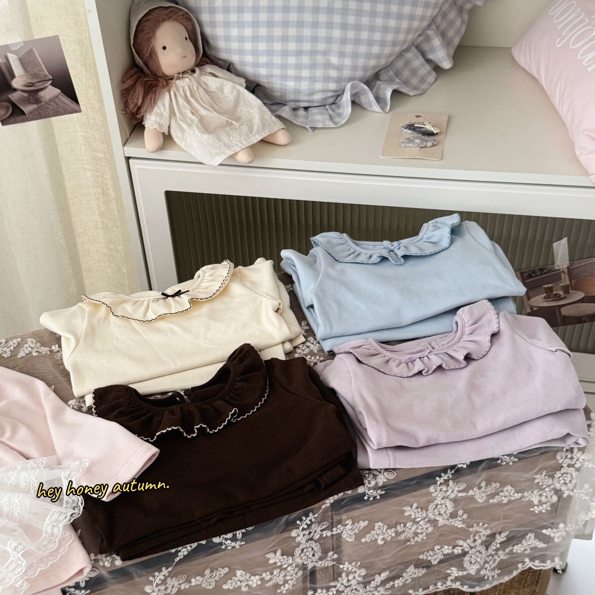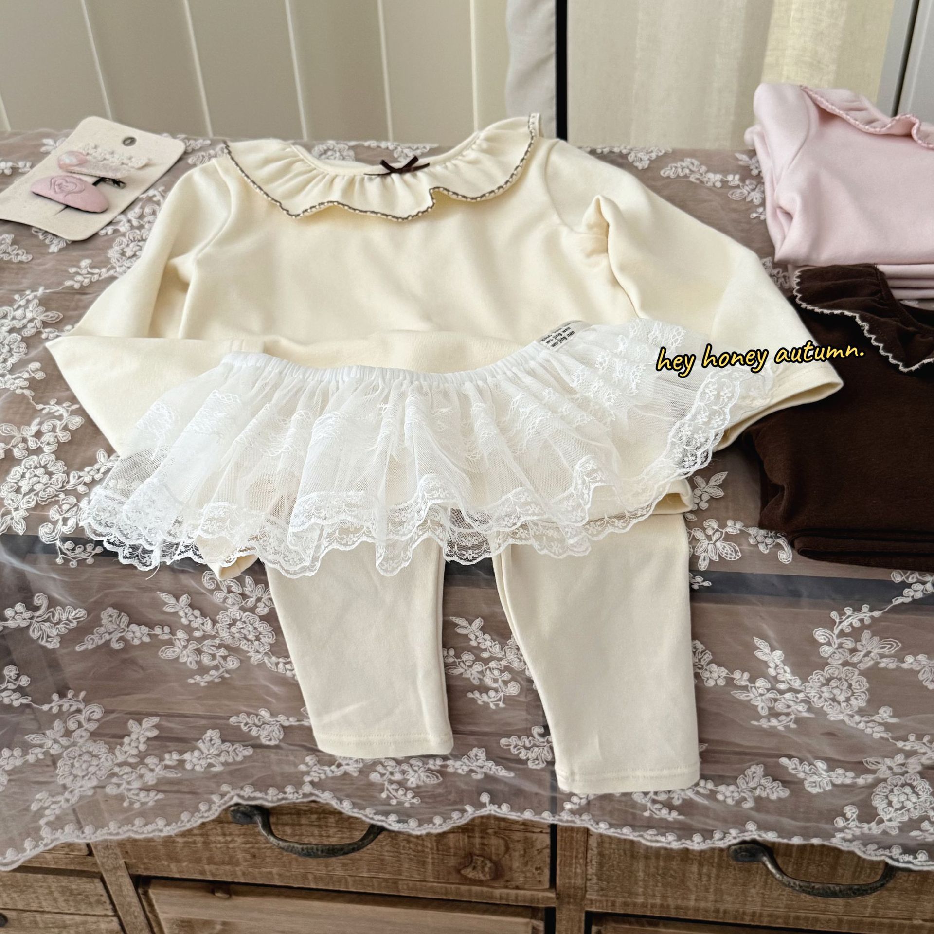 크고 작은 롤 스타일 한국 스타일 봄, 가을 소녀 홈웨어 세트 레이스 칼라 서양식 잠옷 및 잠옷 투피스 세트스토어 가기
