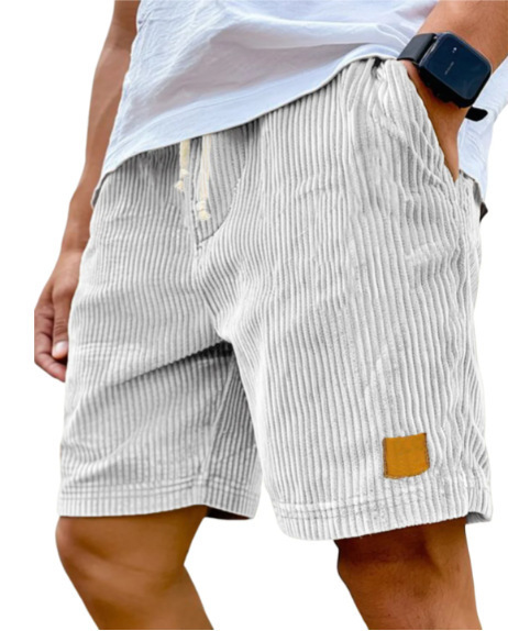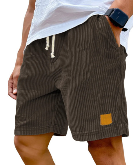 국경 간 2025 유럽과 미국의 아마존 새로운 남성 복고풍 자수 로고 코듀로이 패션 레이스 업 캐주얼 반바지스토어 가기