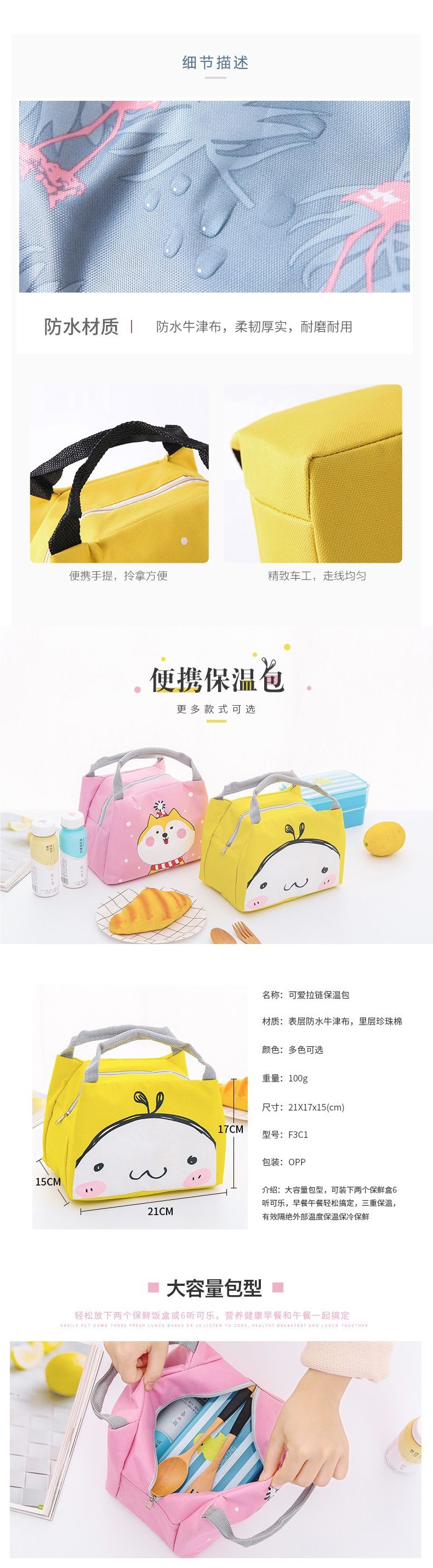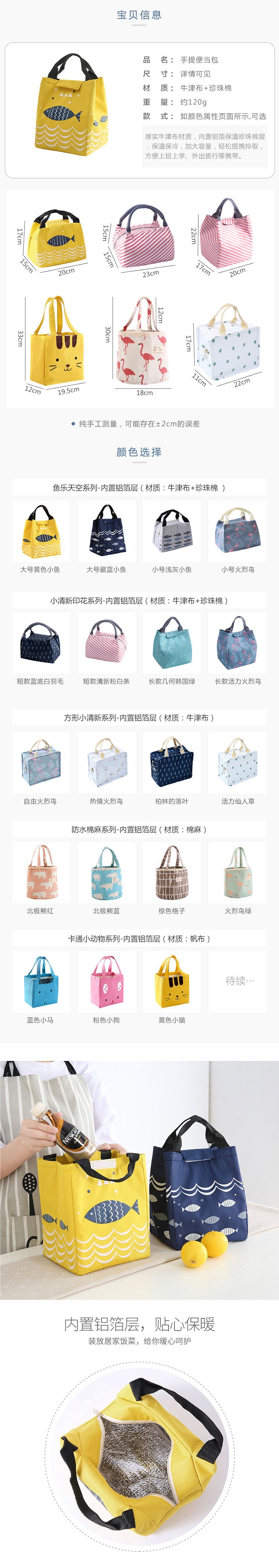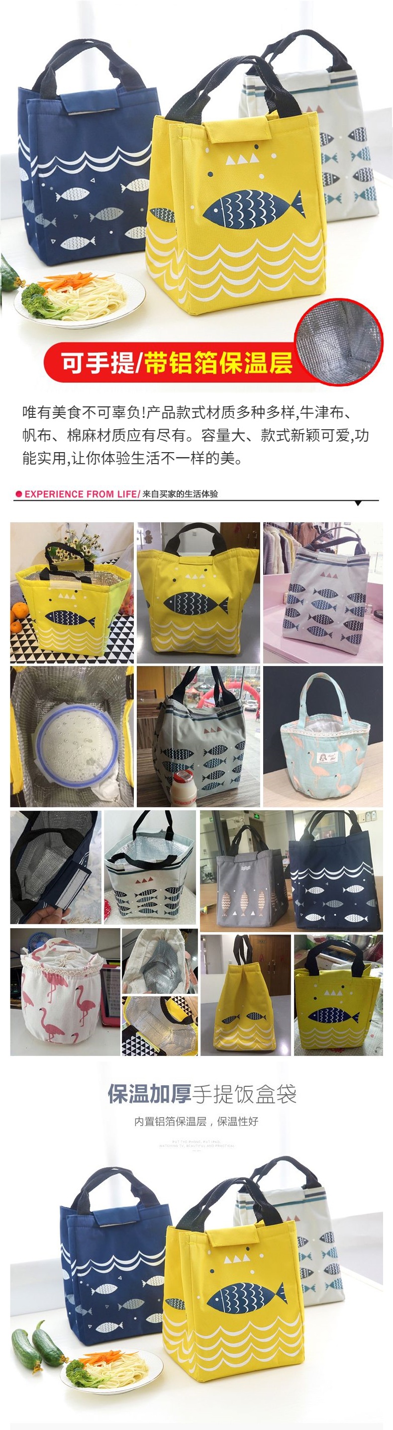 두꺼운 알루미늄 호일 단열 가방 도시락 캔버스 대형 휴대용 가방 손으로 들고 다닐 수 있는 방수 도시락 가방스토어 가기