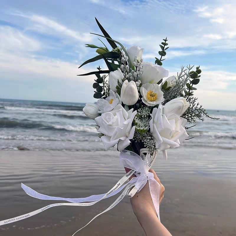 신부가 결혼식 당일에 들고 다니는 웨딩부케, 고급 웨딩사진, 인증서, 시뮬레이션 핸드메이드 튤립 프로포즈 꽃볼스토어 가기