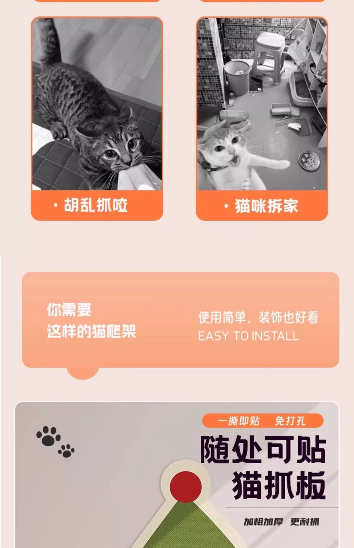 • [가로판] 주황색 고양이 벽등반 - 펠트 고양이 긁는 기둥